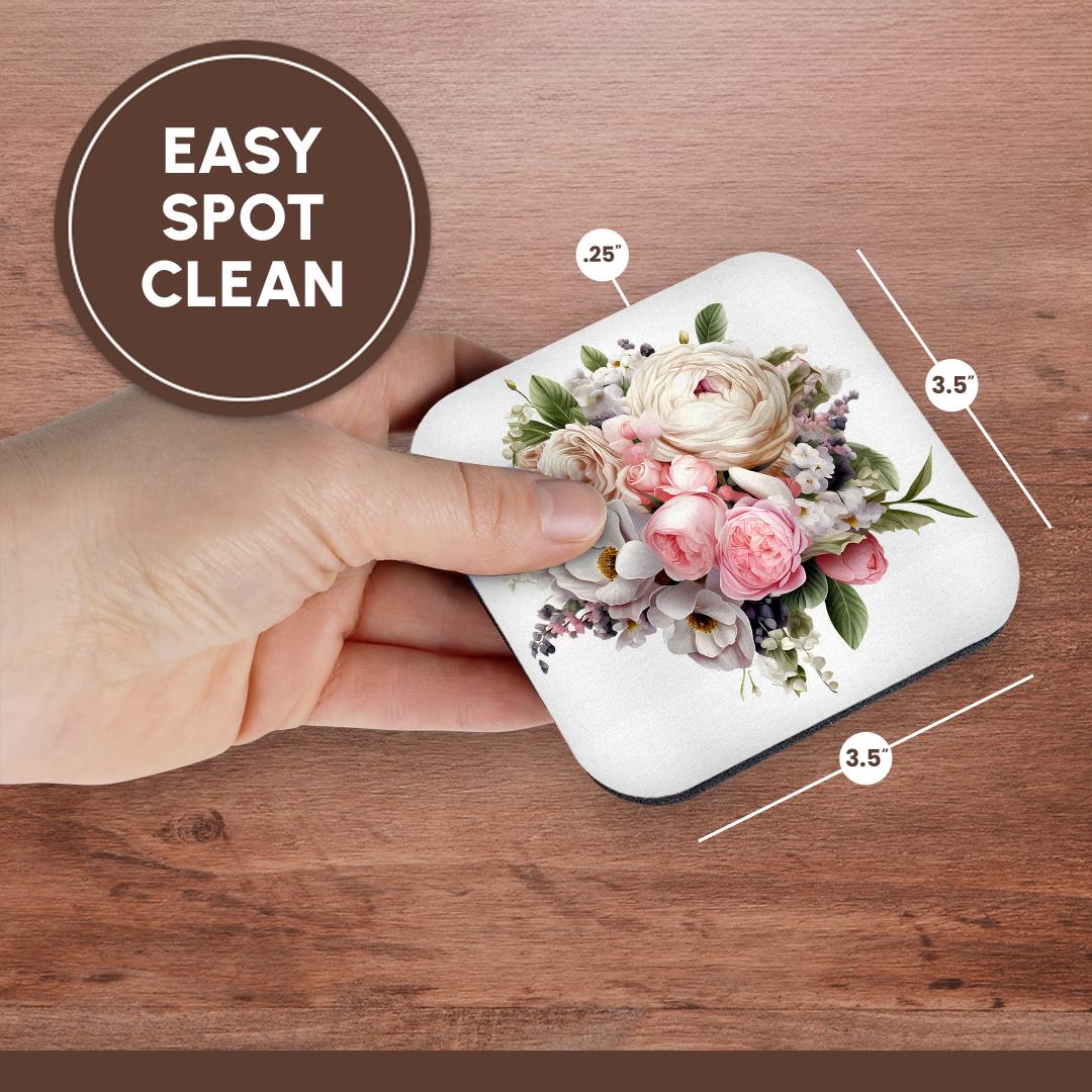 3dRose Pretty Pink and White Bridal Bouquet Illustration - Coasters (cst-383258)