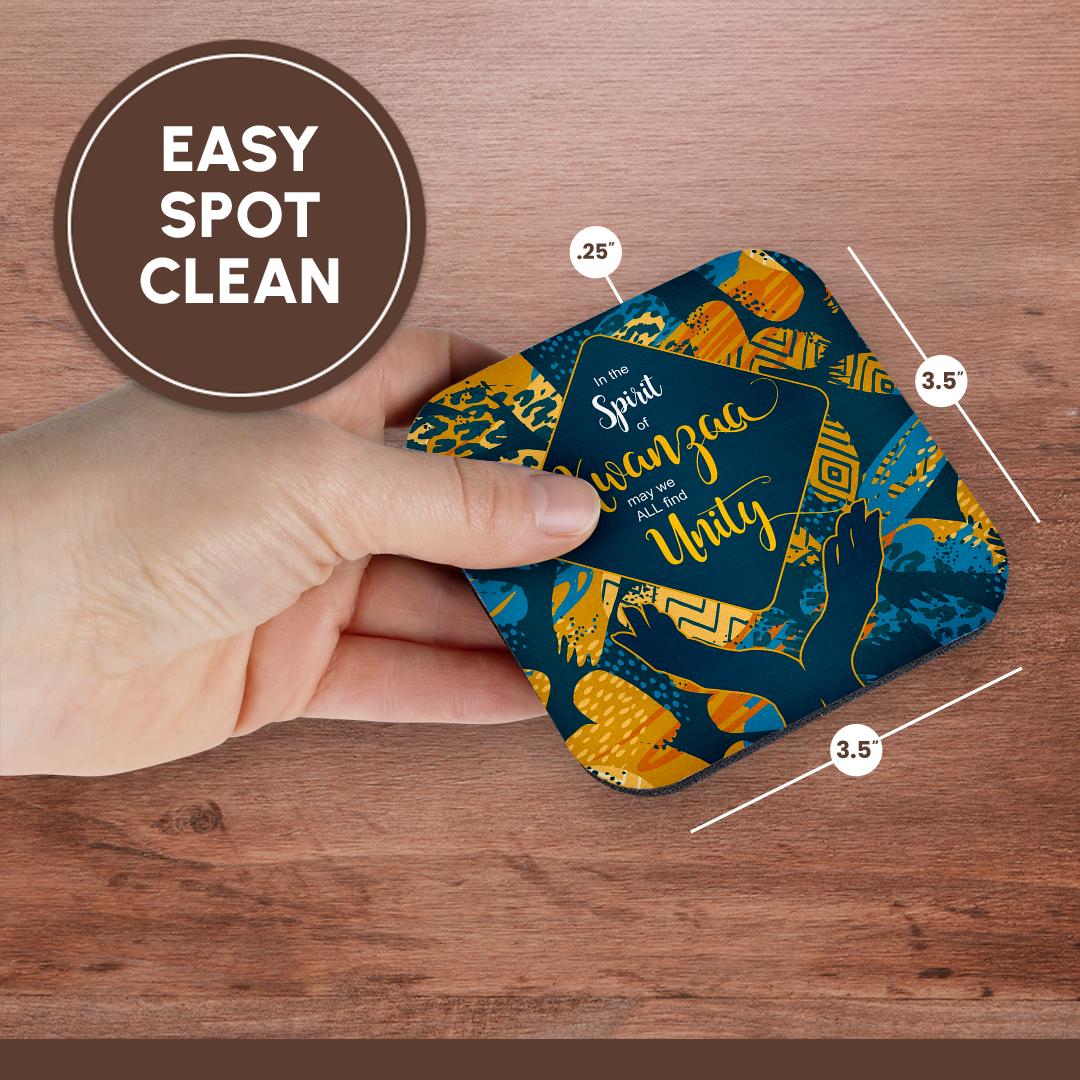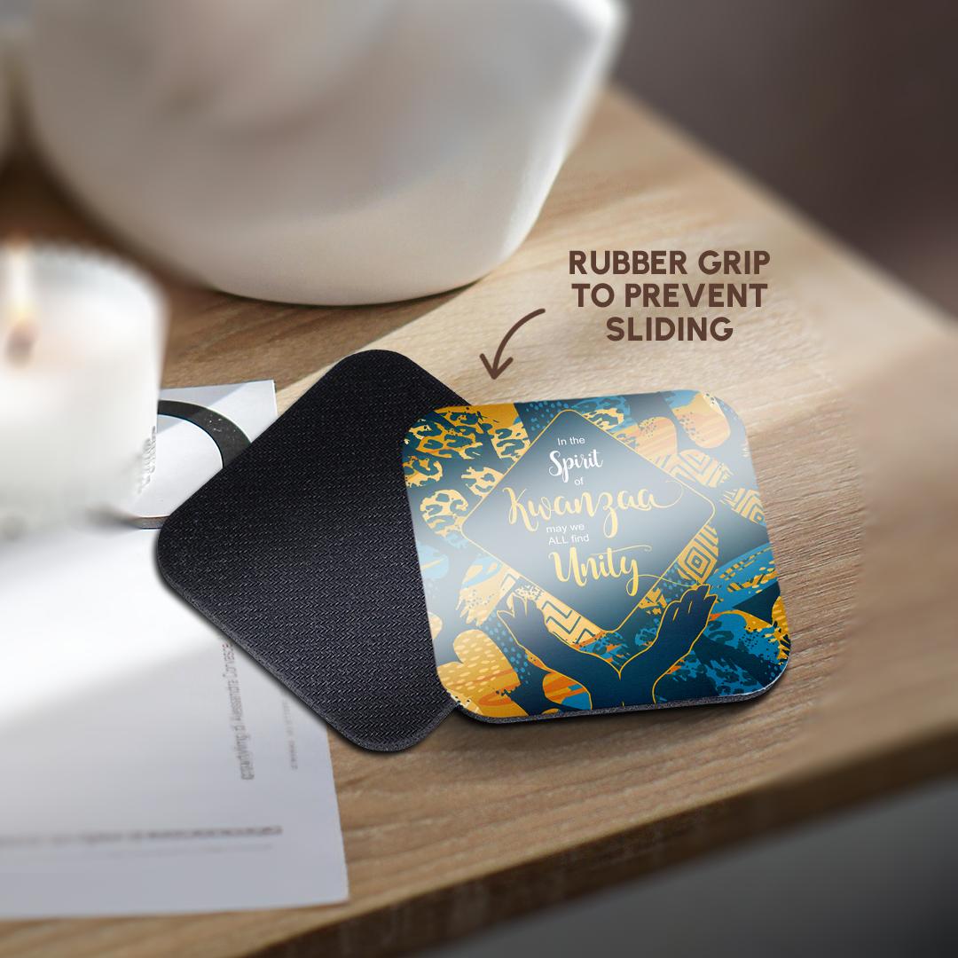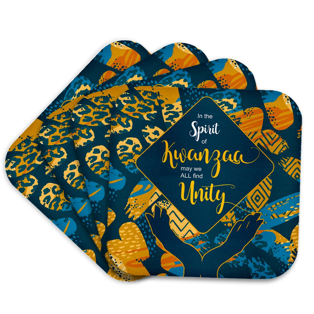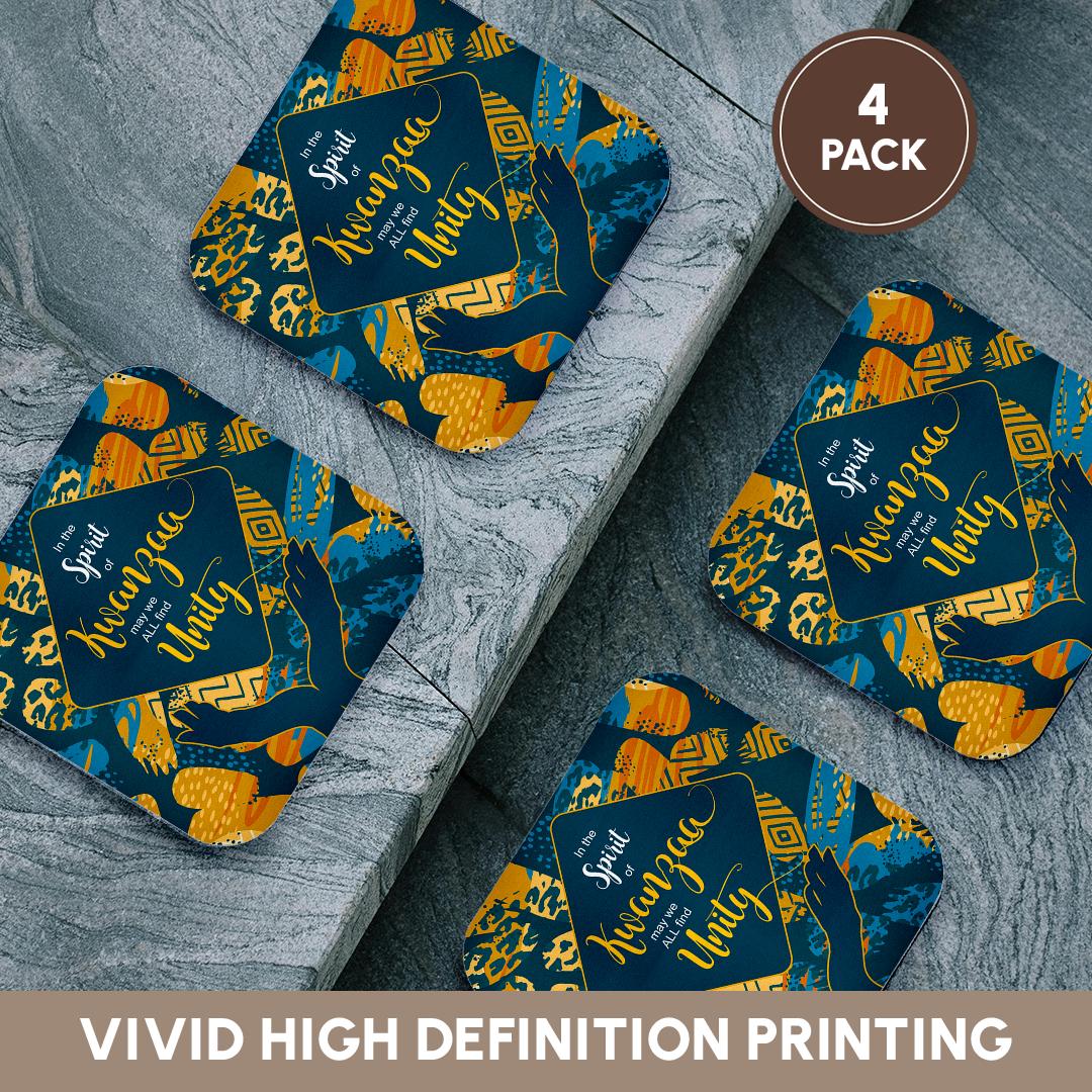 3dRose Spirit of Kwanzaa Open Hands and Heart Blue and Yellow Tribal Pattern - Coasters (CST_339398)
