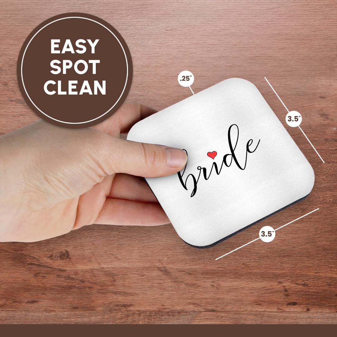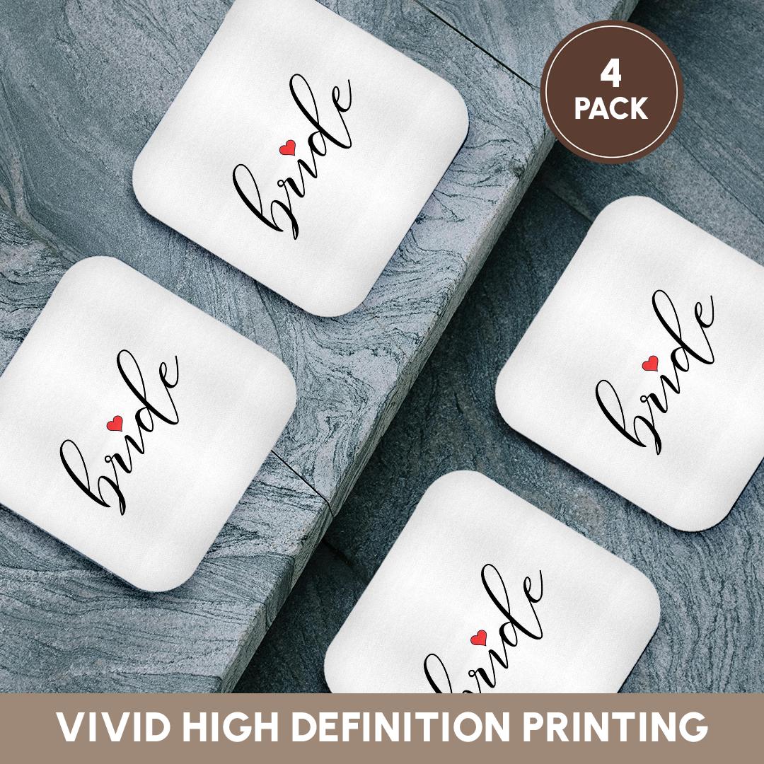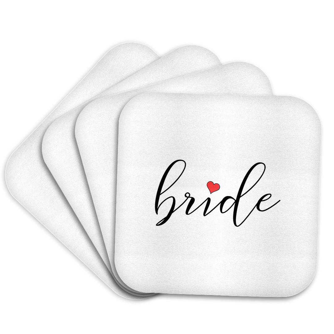 3dRose Stamp City - Typography - Bride Written in Cursive with a Little red Heart Dotting The i. - Coasters (CST_321500)