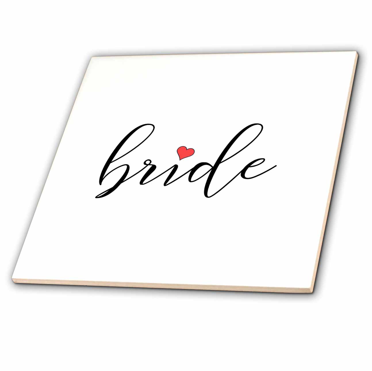 3dRose Stamp City - Typography - Bride Written in Cursive with a Little red Heart Dotting The i. - Tiles (ct_321500)