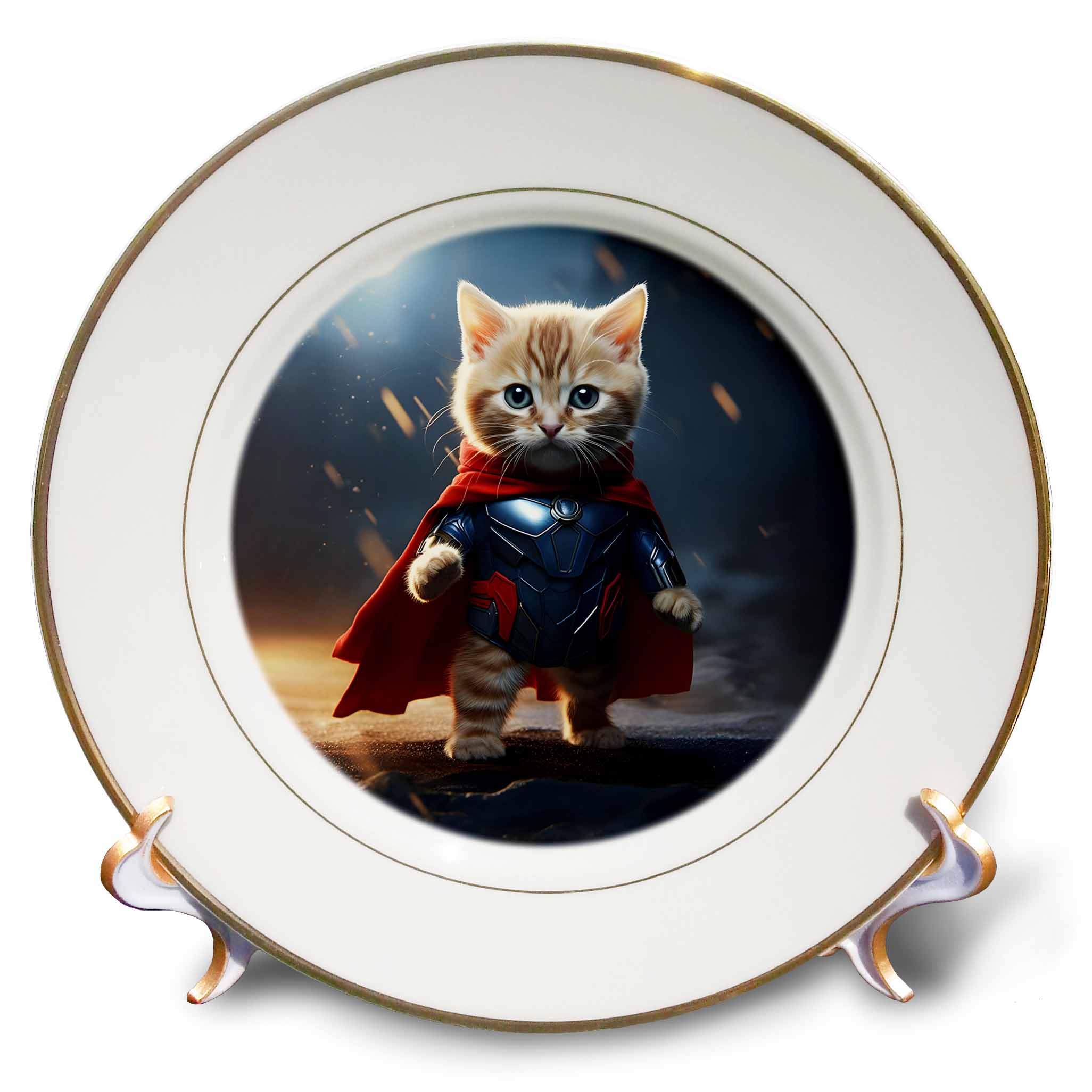 3dRose Superhero Kitten with a Cool Cape Ready for Action - Plates (cp-385464)