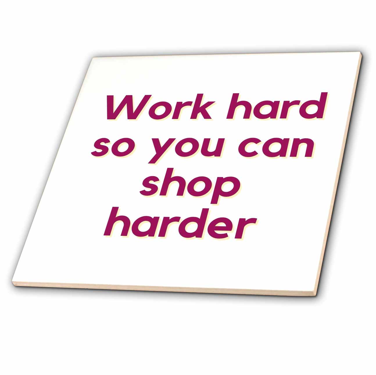 Text of Work Hard so you can Shop Harder Tile is great for a backsplash, countertop or as an accent. This commercial quality construction grade tile has a high gloss finish. The image is applied to the top surface and can be cleaned with a mild detergent.