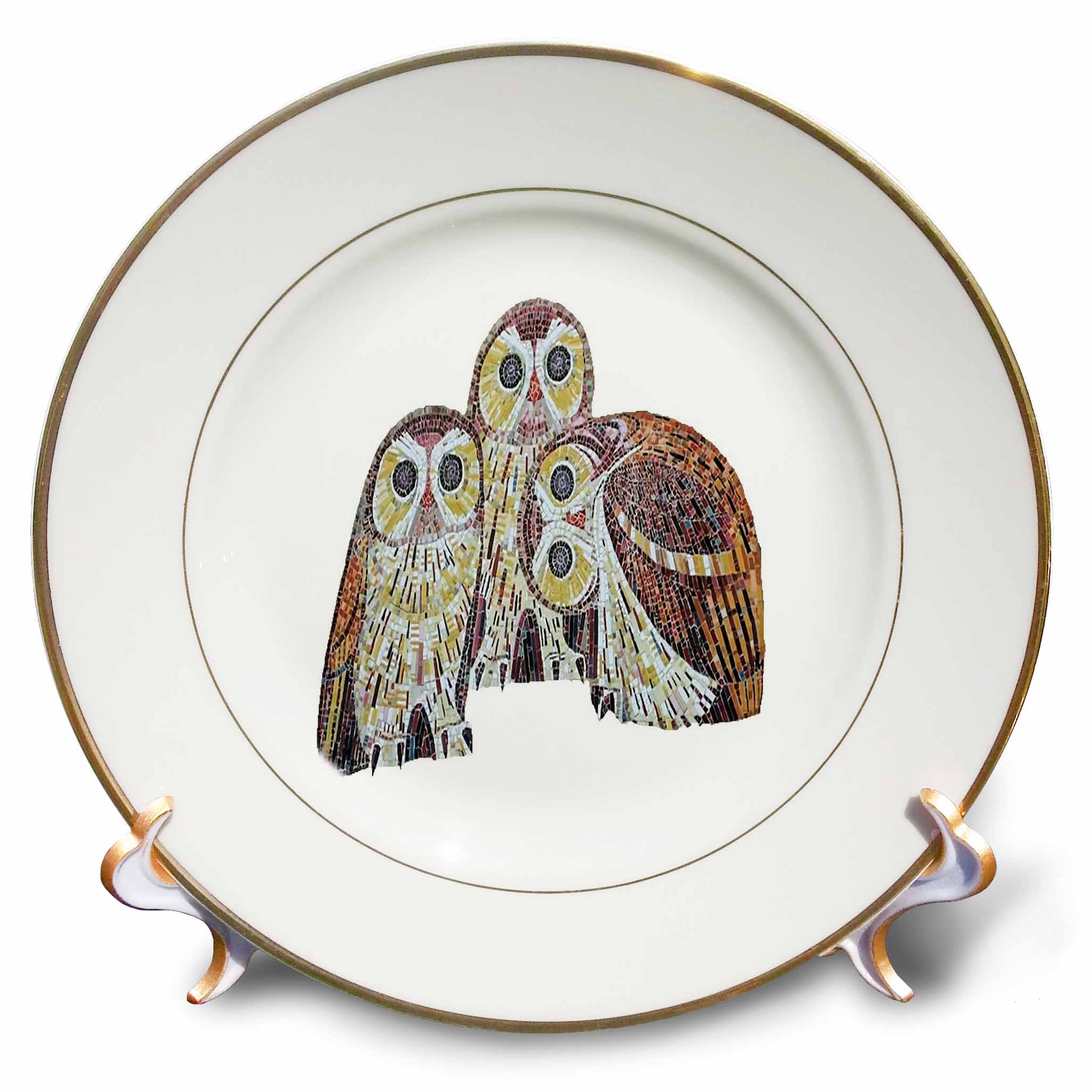 3dRose Three Large Owls Detailed Vector in Art Nouveau Style - Plates (cp-382556)
