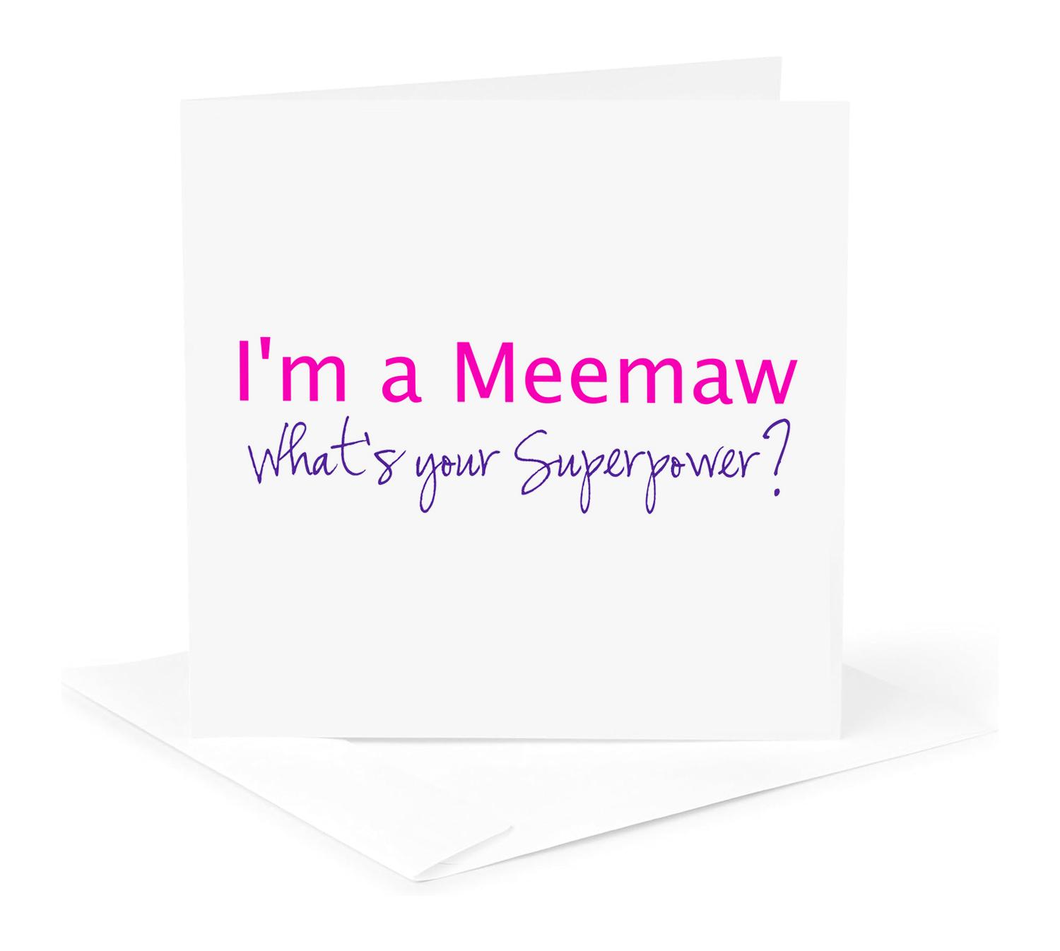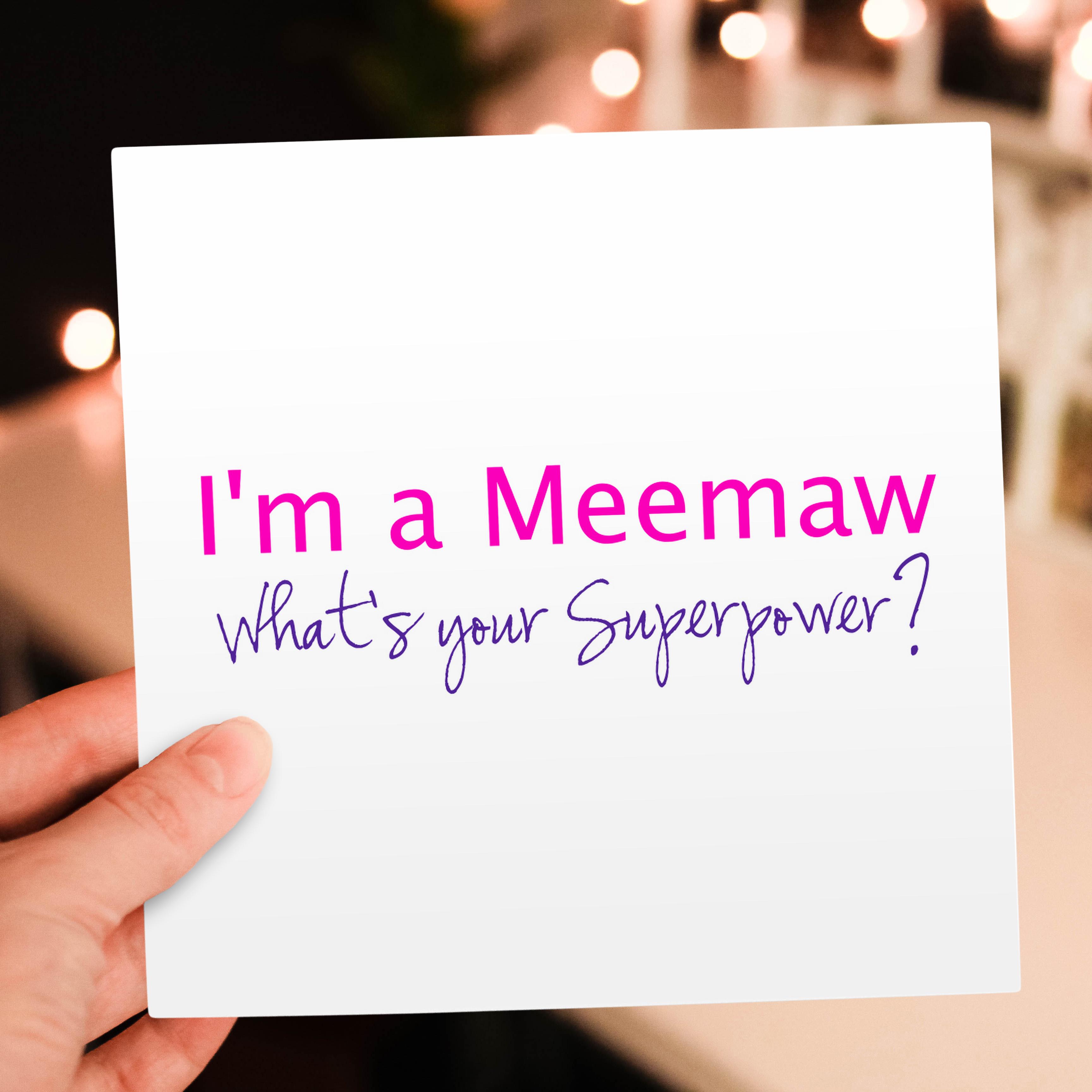 InspirationzStore Typography - Im a Meemaw. Whats your Superpower - hot pink - funny gift for grandma - Greeting Cards