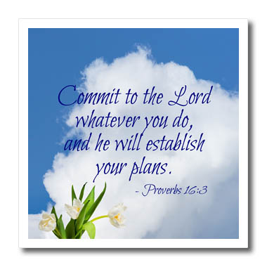 3dRose Alexis Design - Quotes Religion - Bible Quotes - Commit to The Lord. White Cloud, Tulips - Iron on Heat Transfers