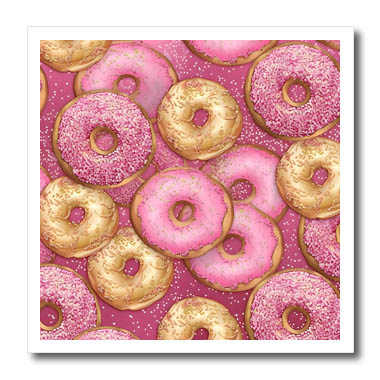 3dRose Pink and Image of Gold Frosted Donuts Background - Iron on Heat Transfers (ht-384248)