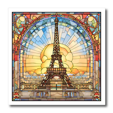 3dRose Pretty Image of Stained Glass Eiffel Tower Background - Iron on Heat Transfers (ht-384251)