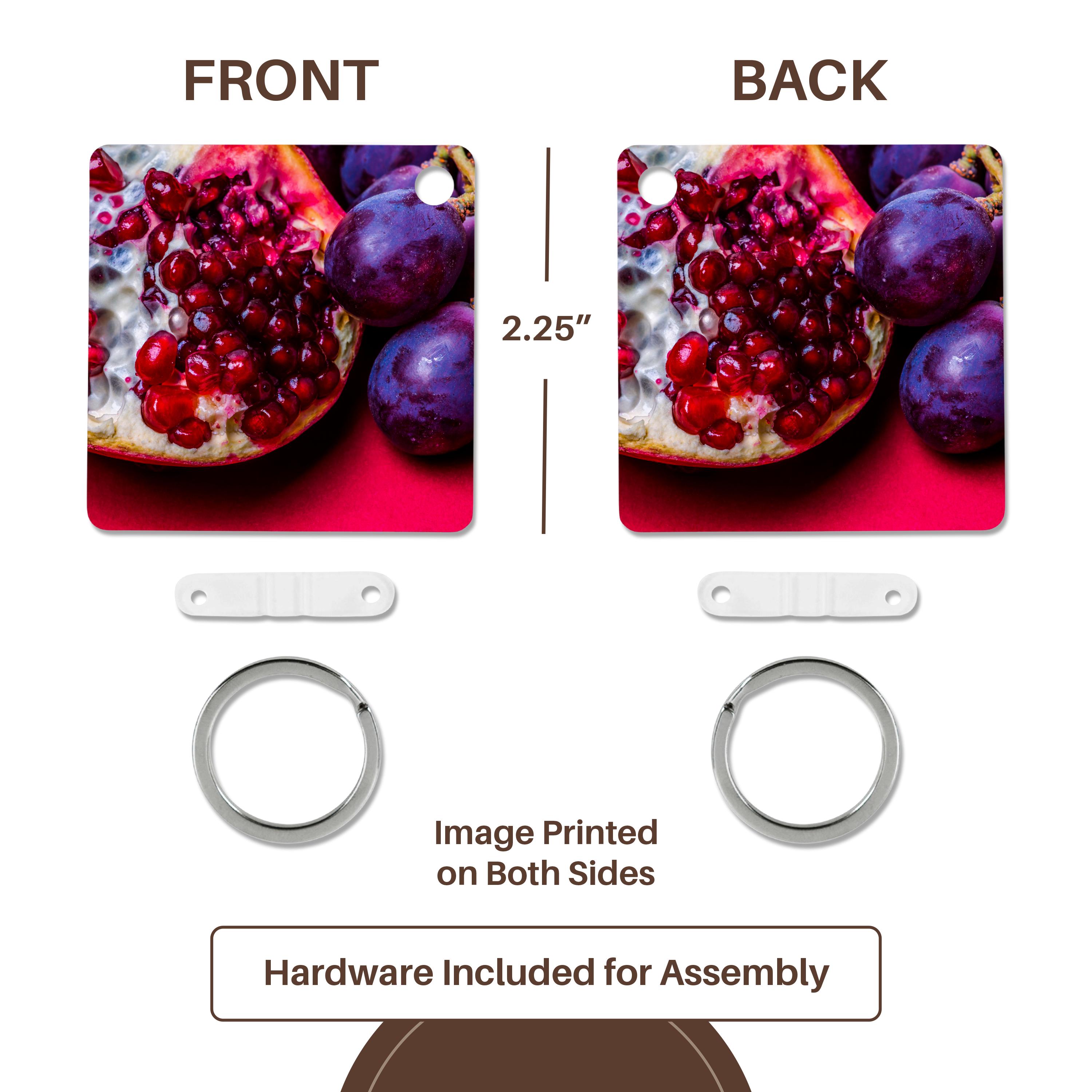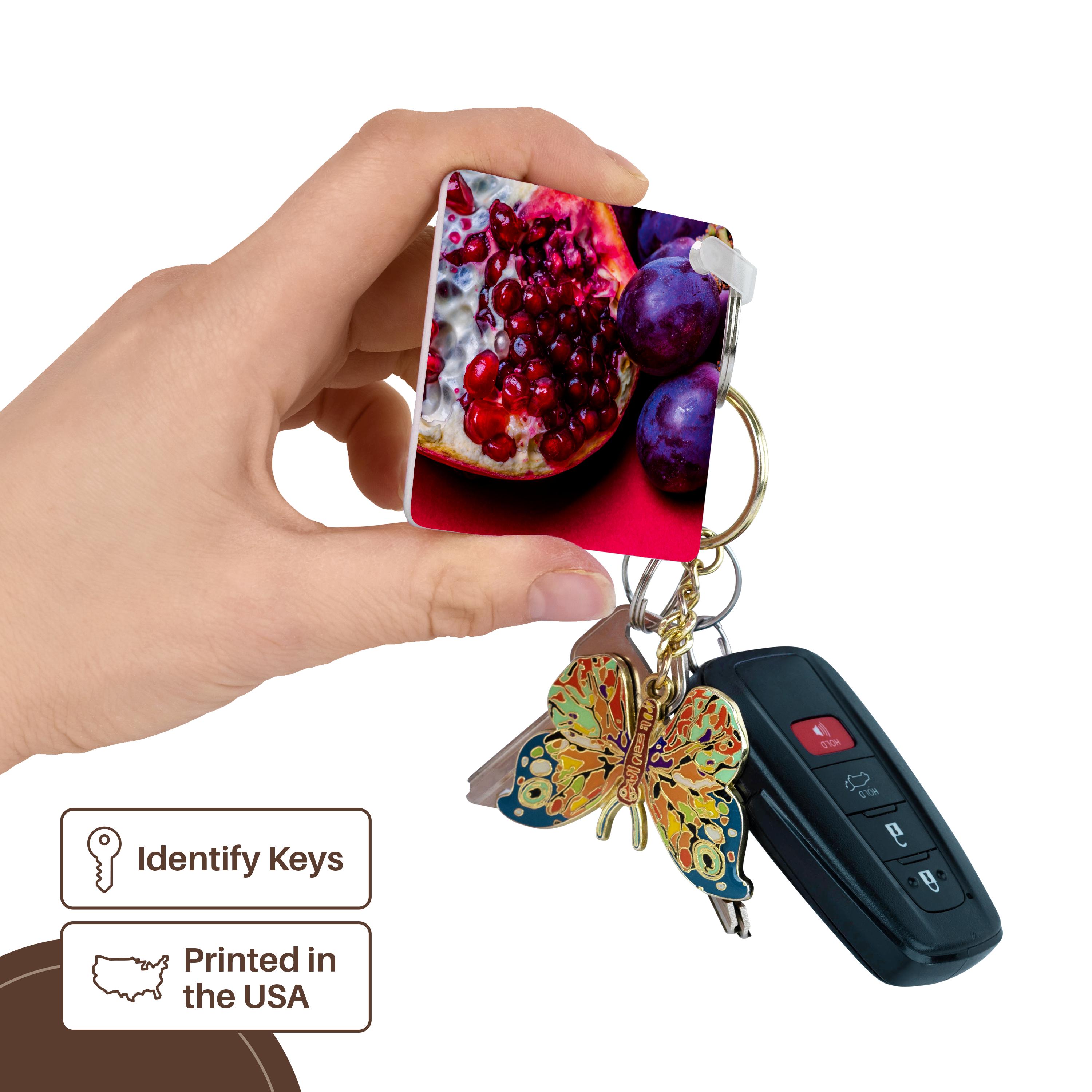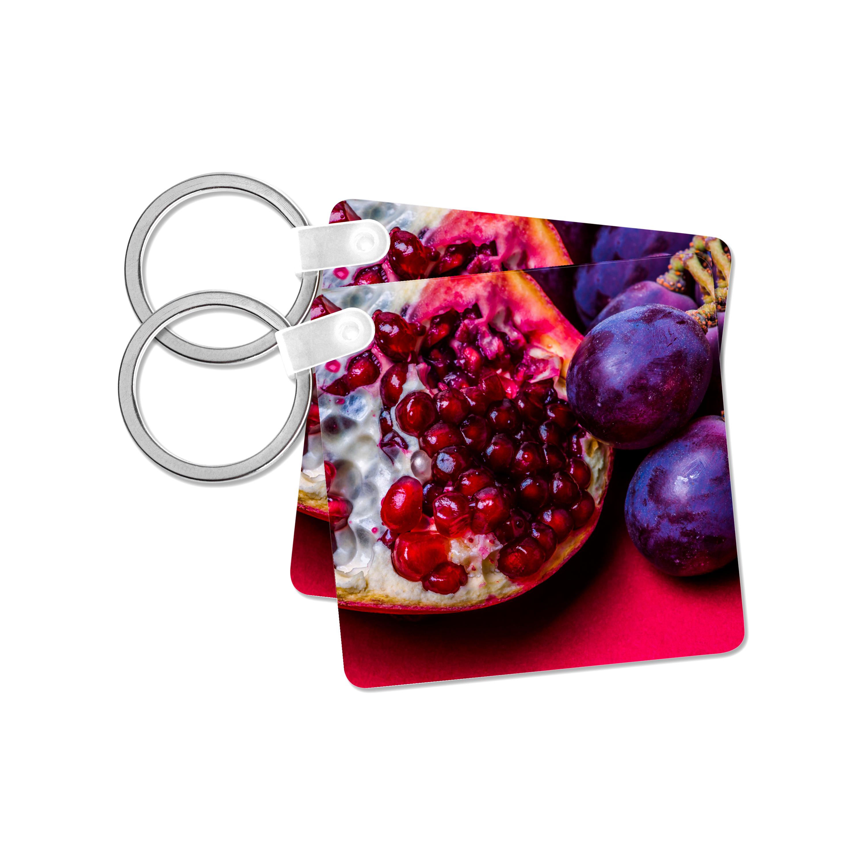 Key Chain - Half of pomegranate, purple grapes, red background Alexis Photography - Food Fruit Mix