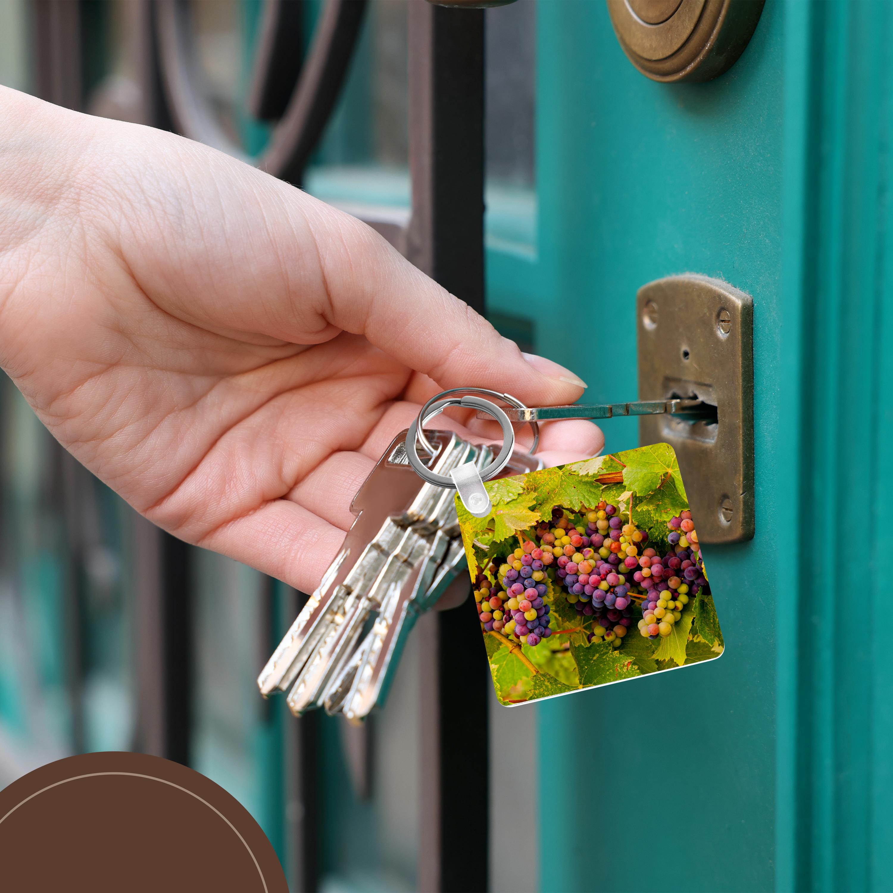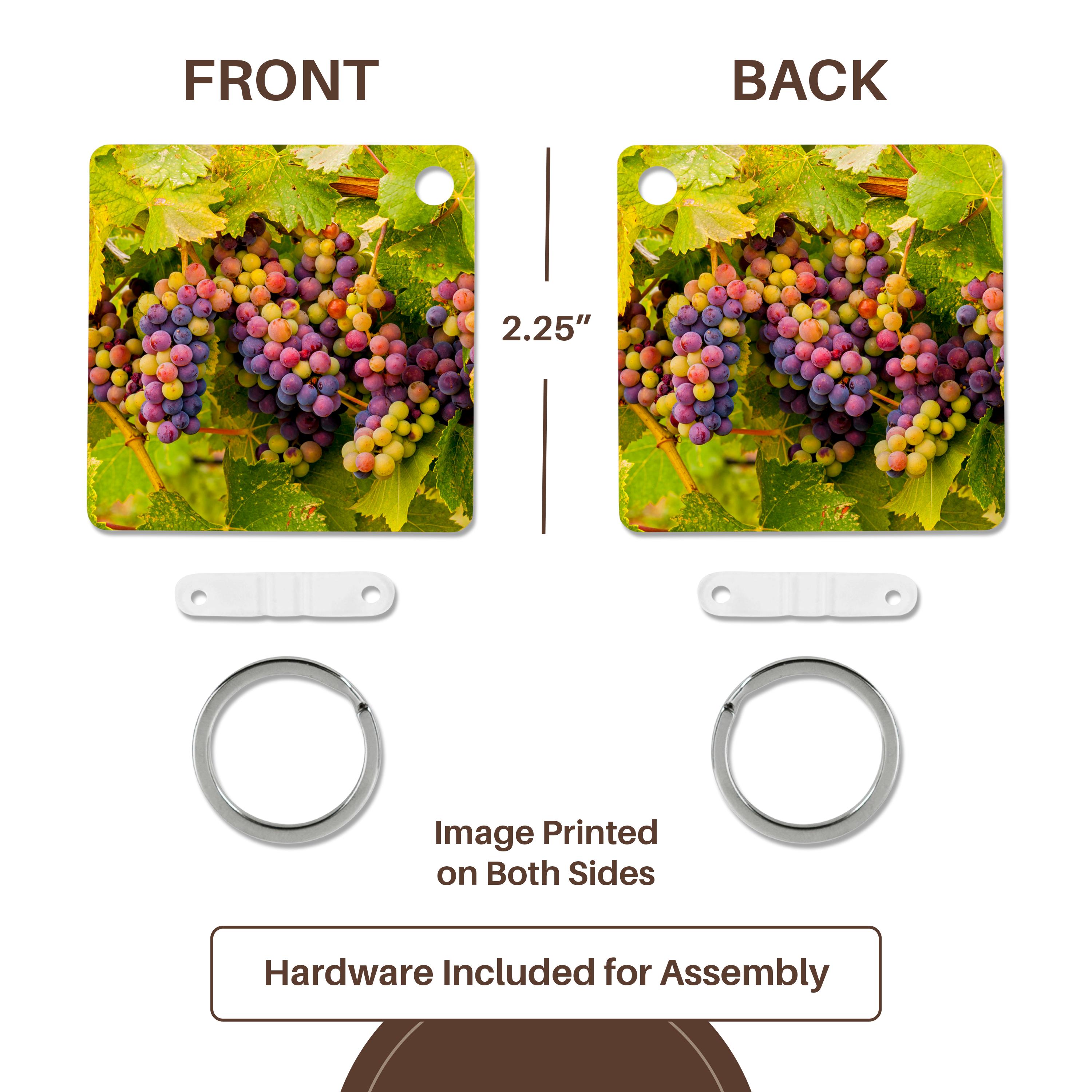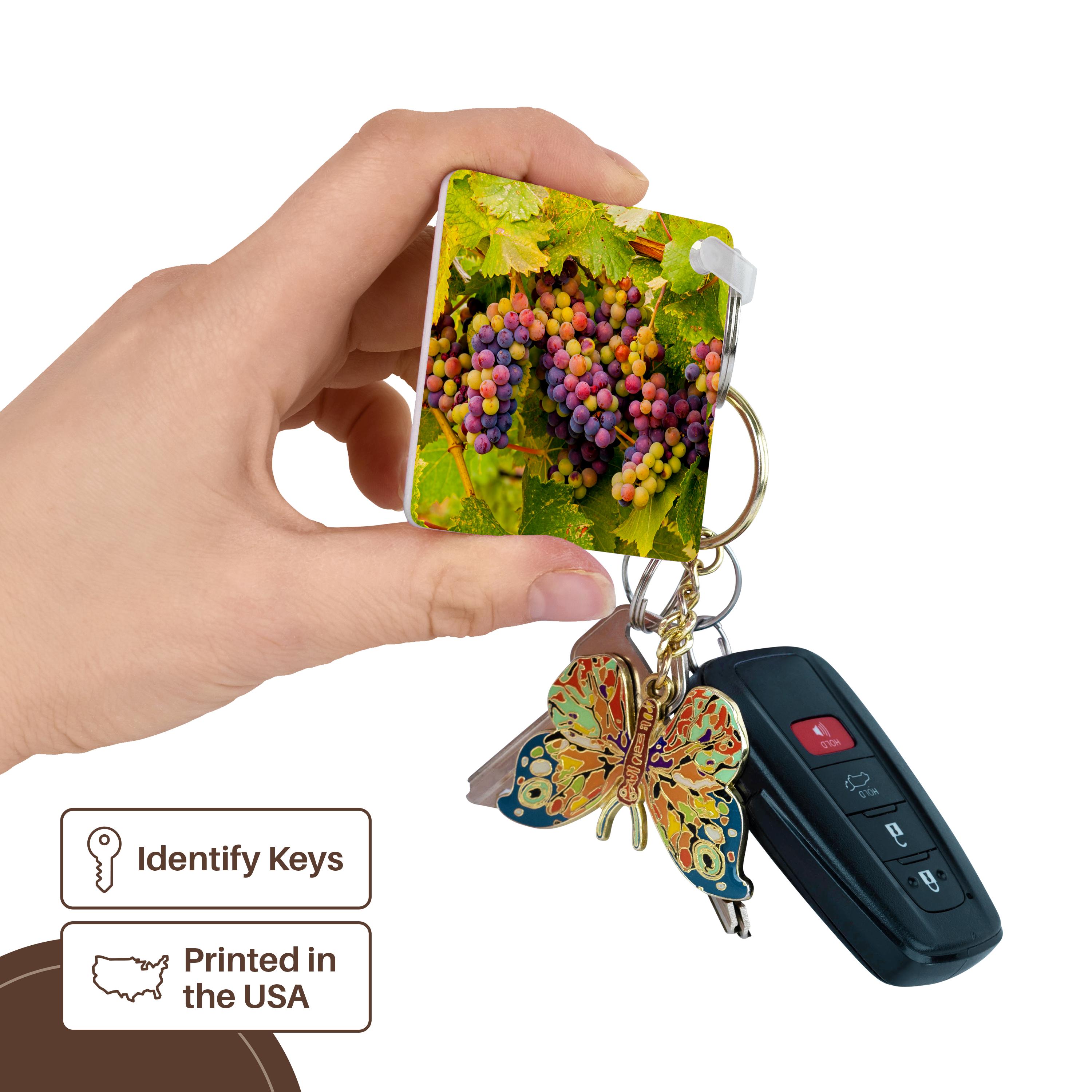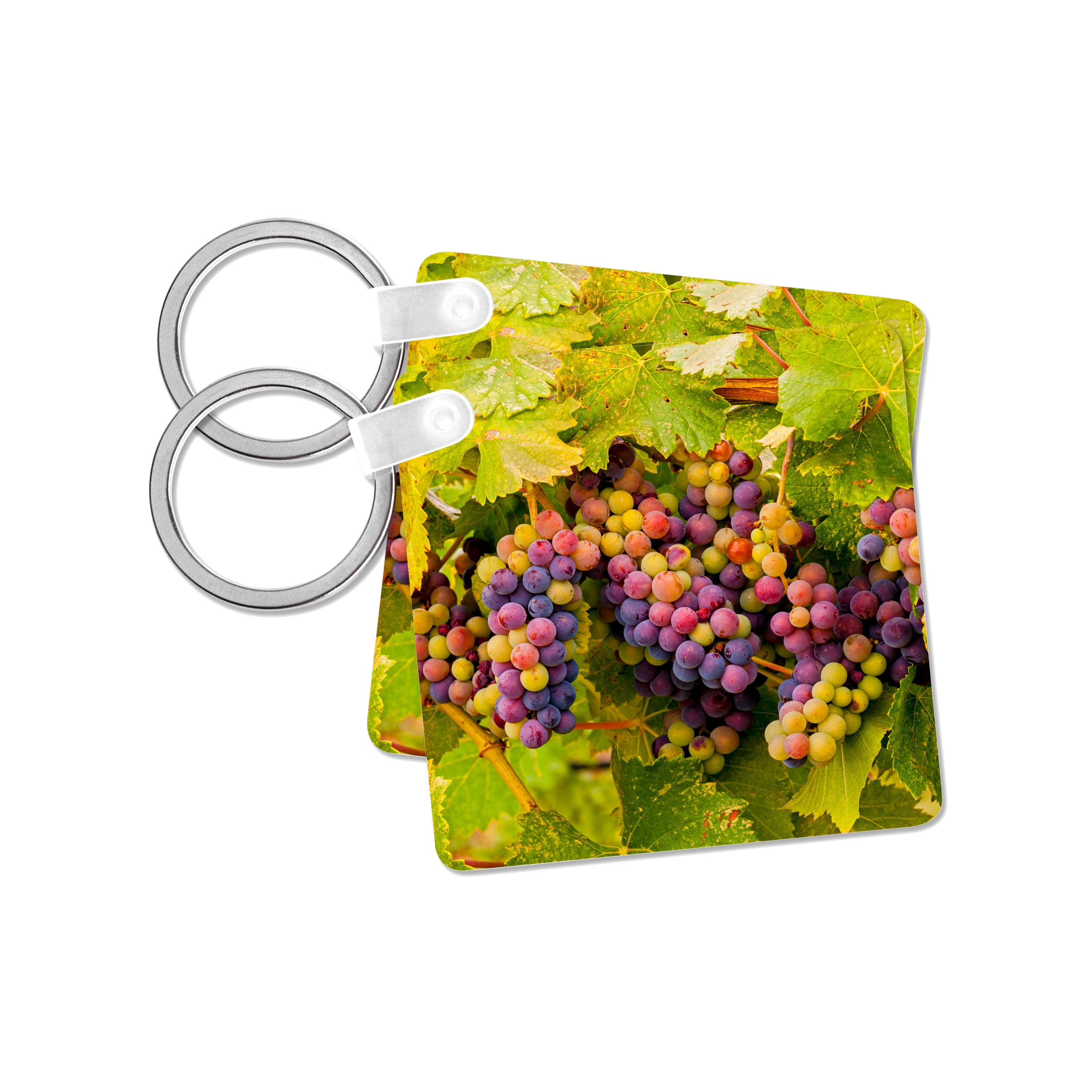 USA, Washington, Okanogan Valley. Pinot grapes ripen during veraison. Key Chain is available in sets of 2, 4 and 6; making them perfect for sharing. Image is printed on both sides and has a high gloss finish. Measures 2 3/8" x 2 3/8" x 3/8" and are made of heavy duty durable plastic. Rings and plastic clips included.