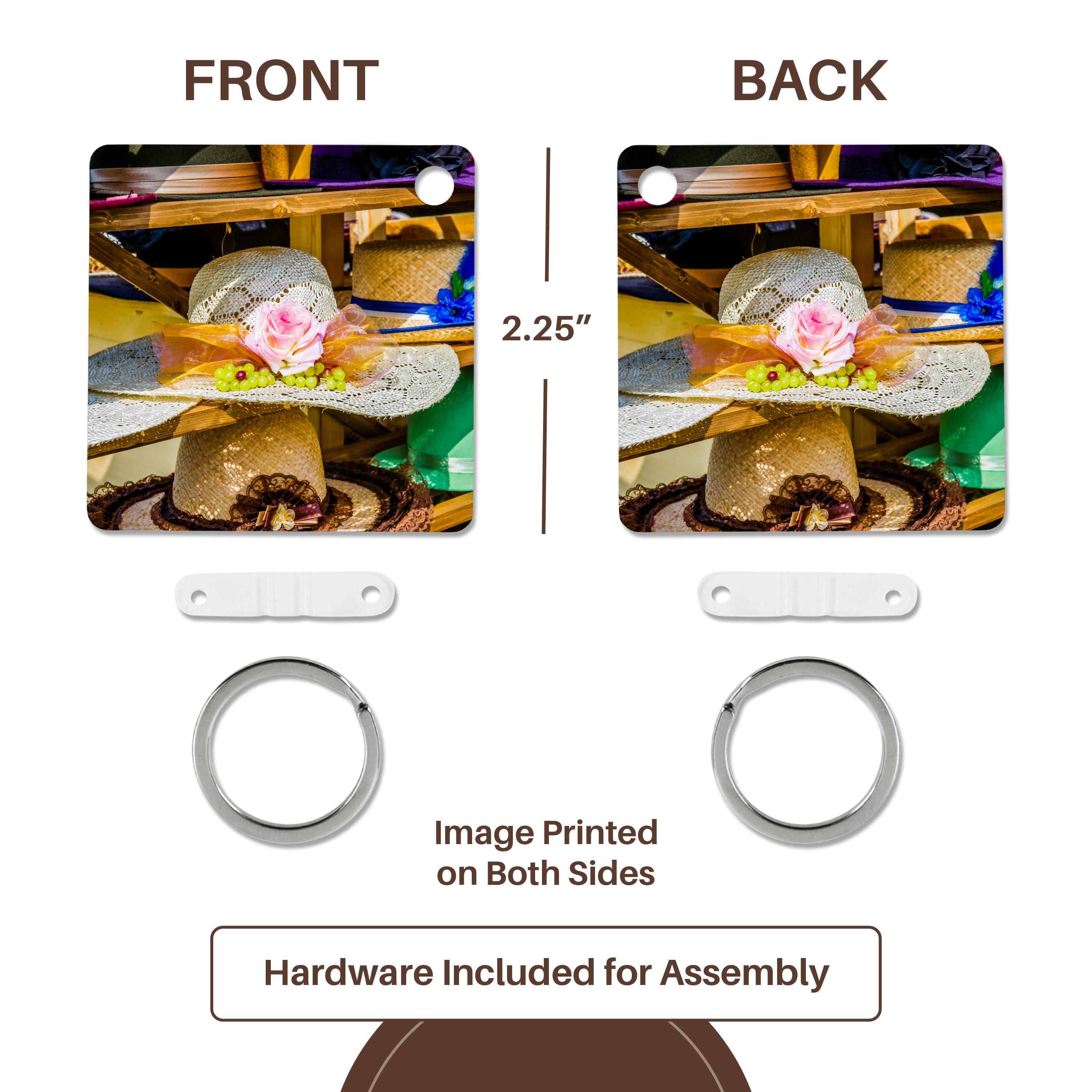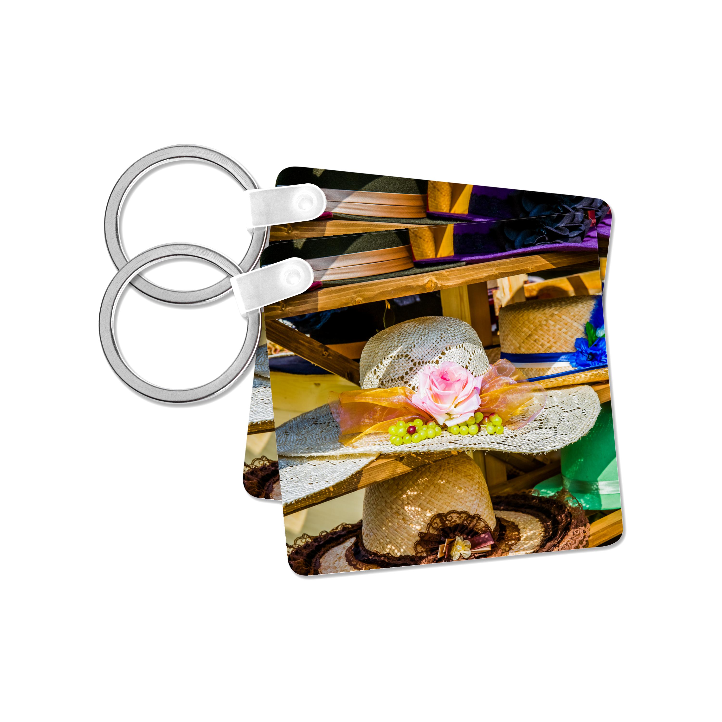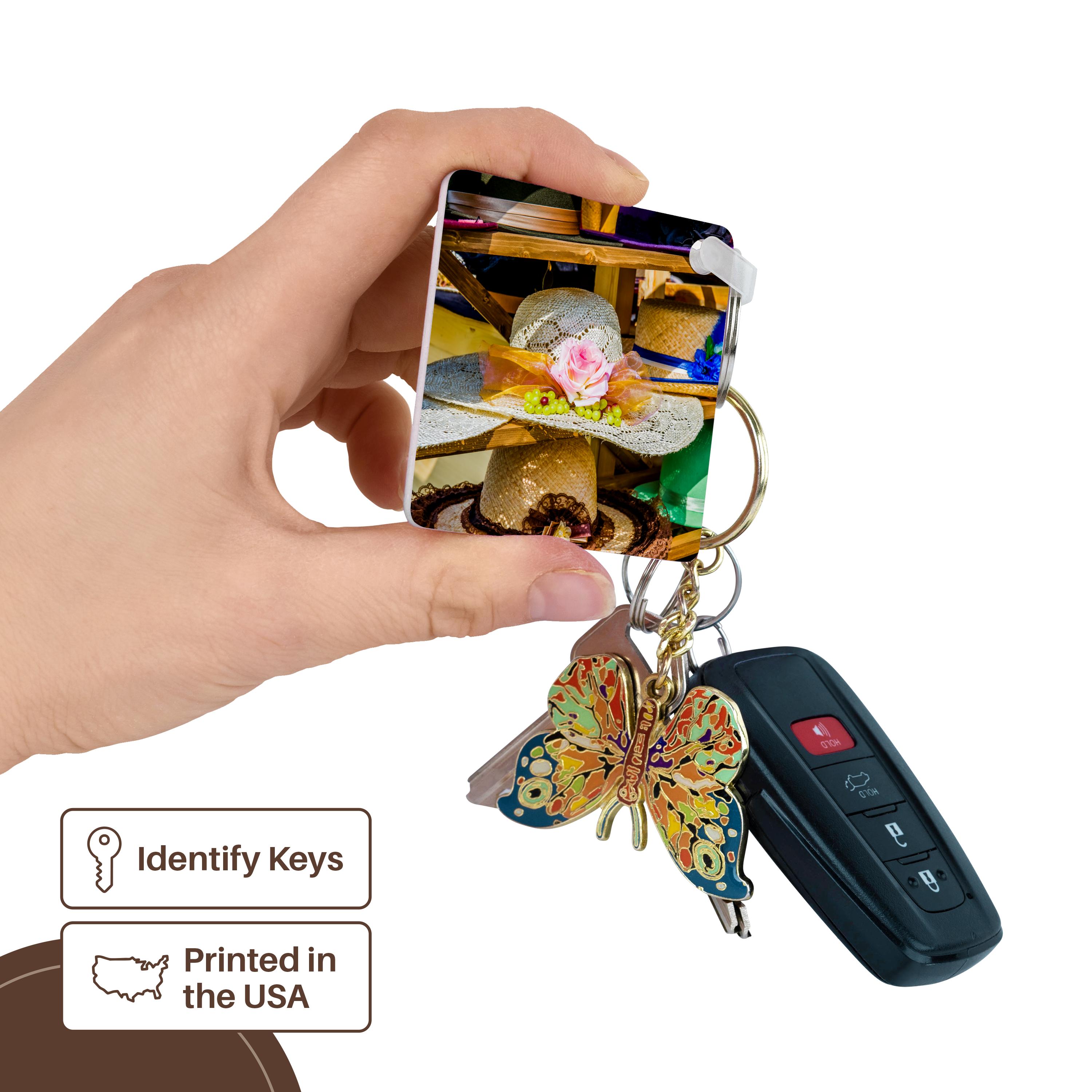 Key Chain - Vintage female straw hats. Pink rose and grapes Alexis Photography - Objects