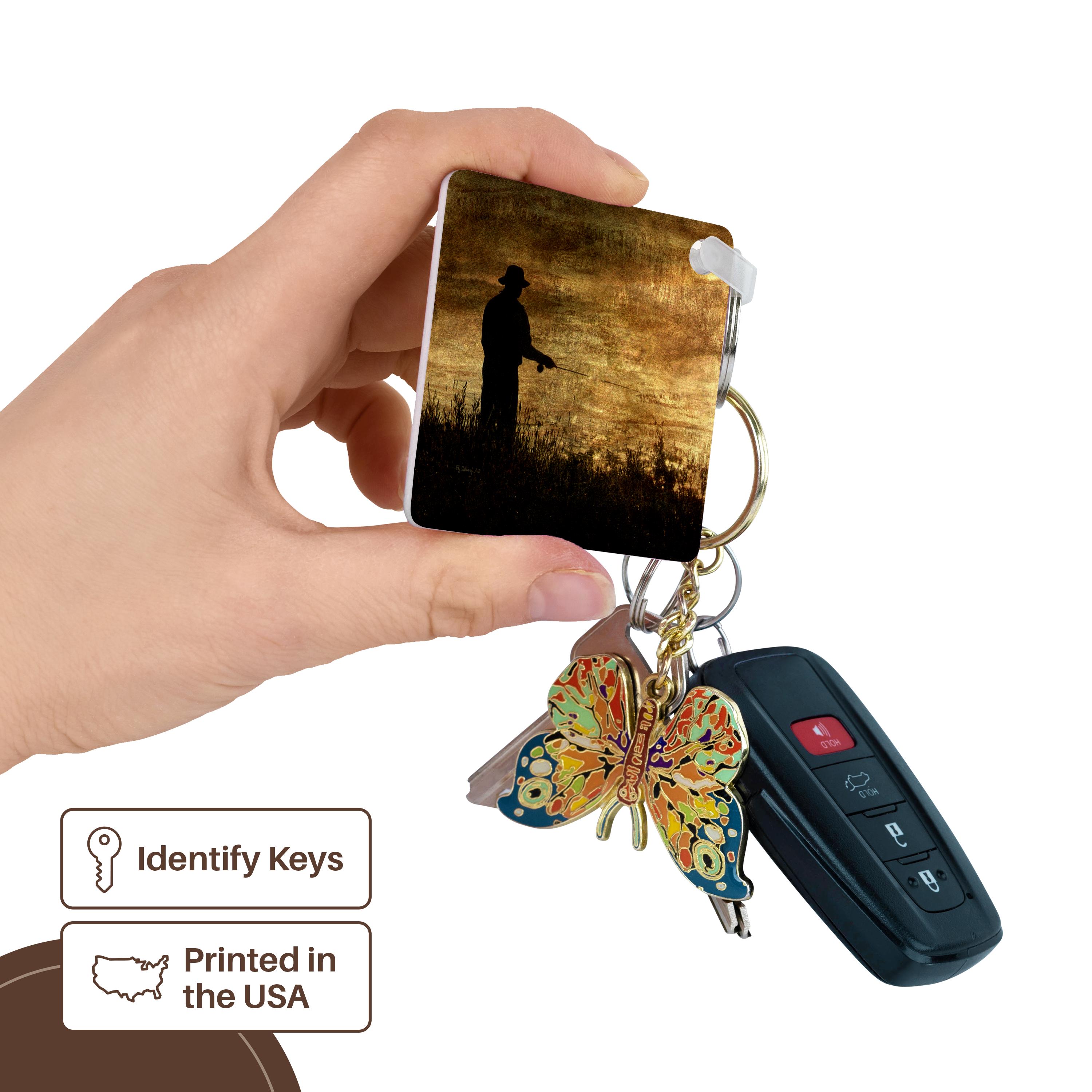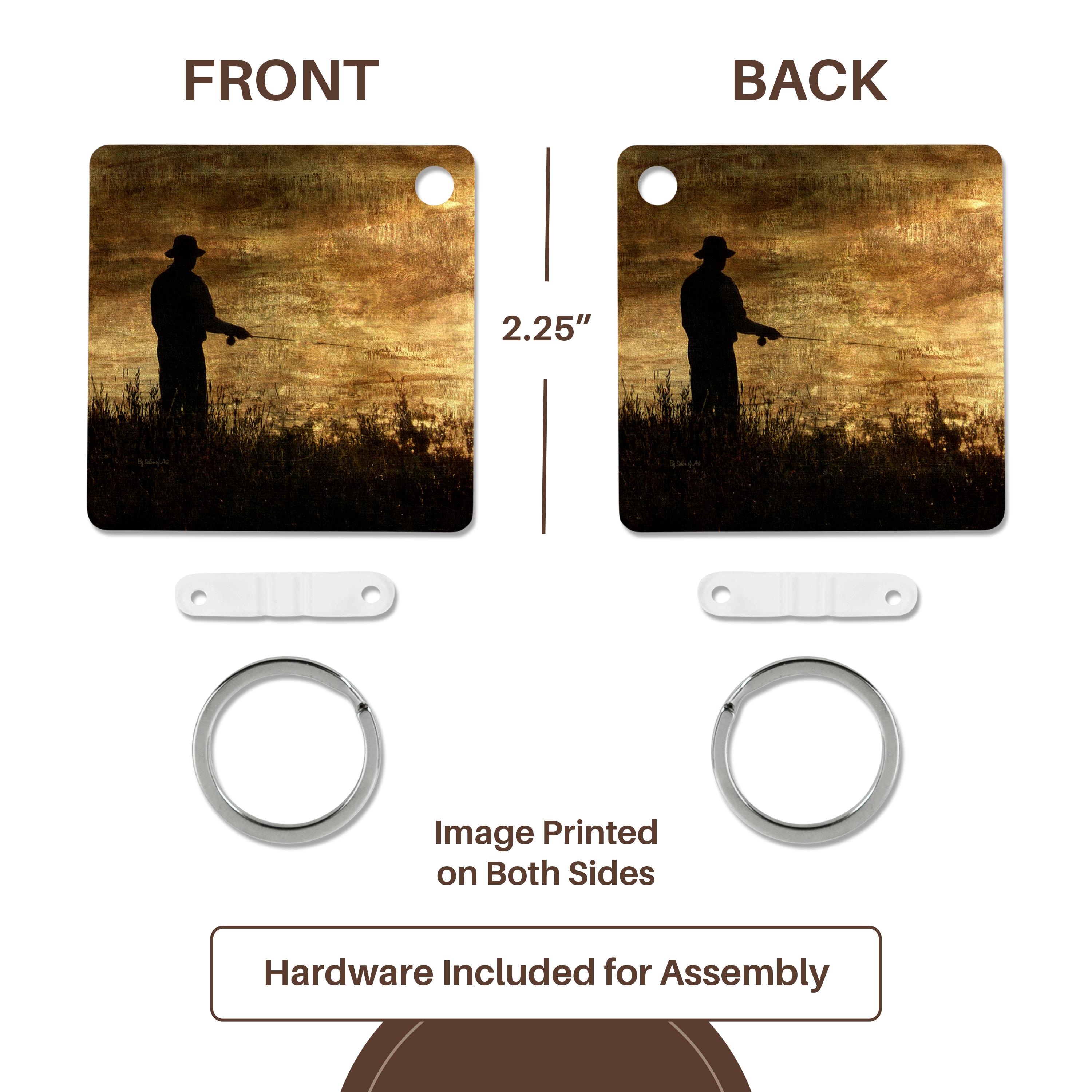 A Day of Fishing Key Chain is available in sets of 2, 4 and 6; making them perfect for sharing. Image is printed on both sides and has a high gloss finish. Measures 2 3/8" x 2 3/8" x 3/8" and are made of heavy duty durable plastic. Rings and plastic clips included.