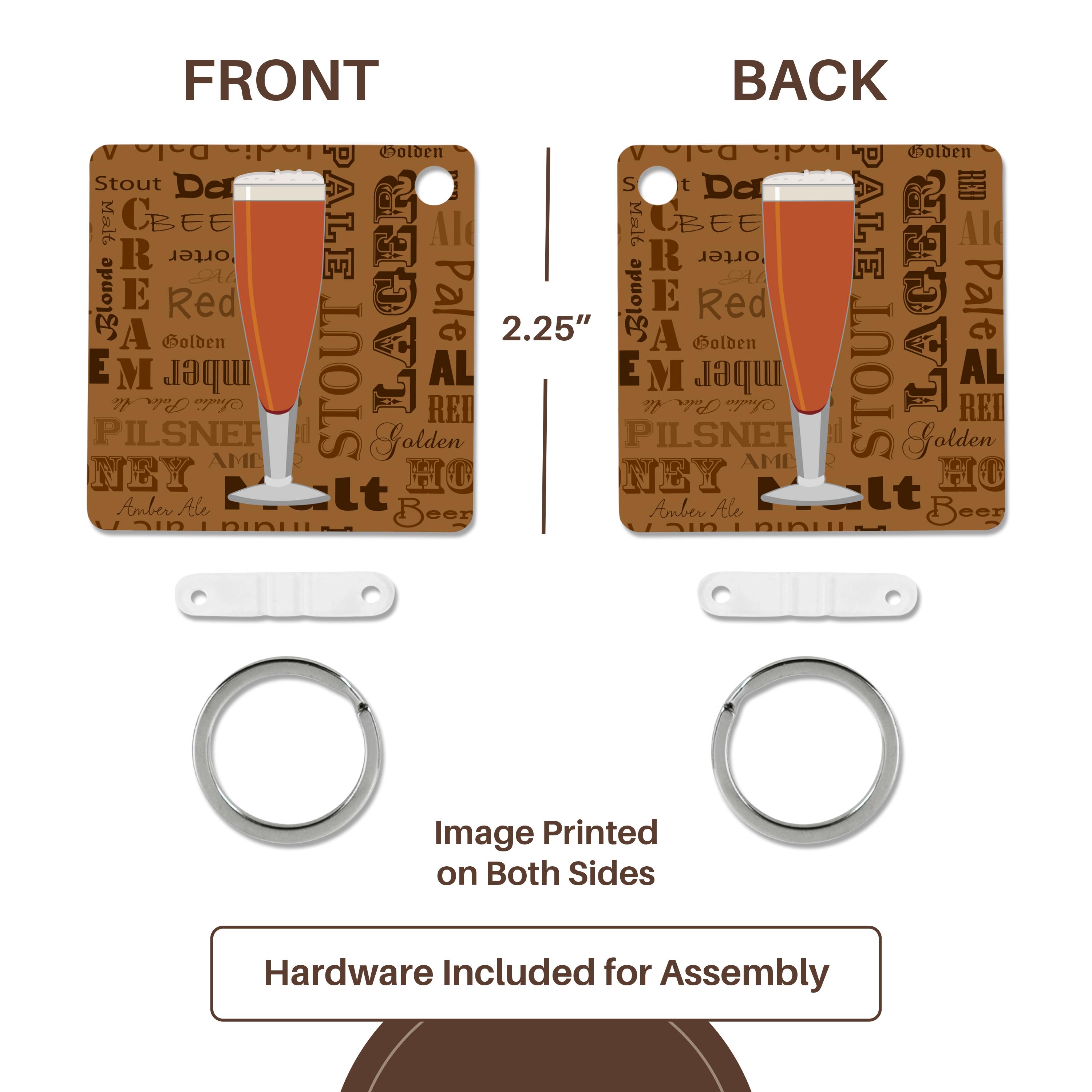 Beer Lover Series Flute Key Chain is available in sets of 2, 4 and 6; making them perfect for sharing. Image is printed on both sides and has a high gloss finish. Measures 2 3/8" x 2 3/8" x 3/8" and are made of heavy duty durable plastic. Rings and plastic clips included.