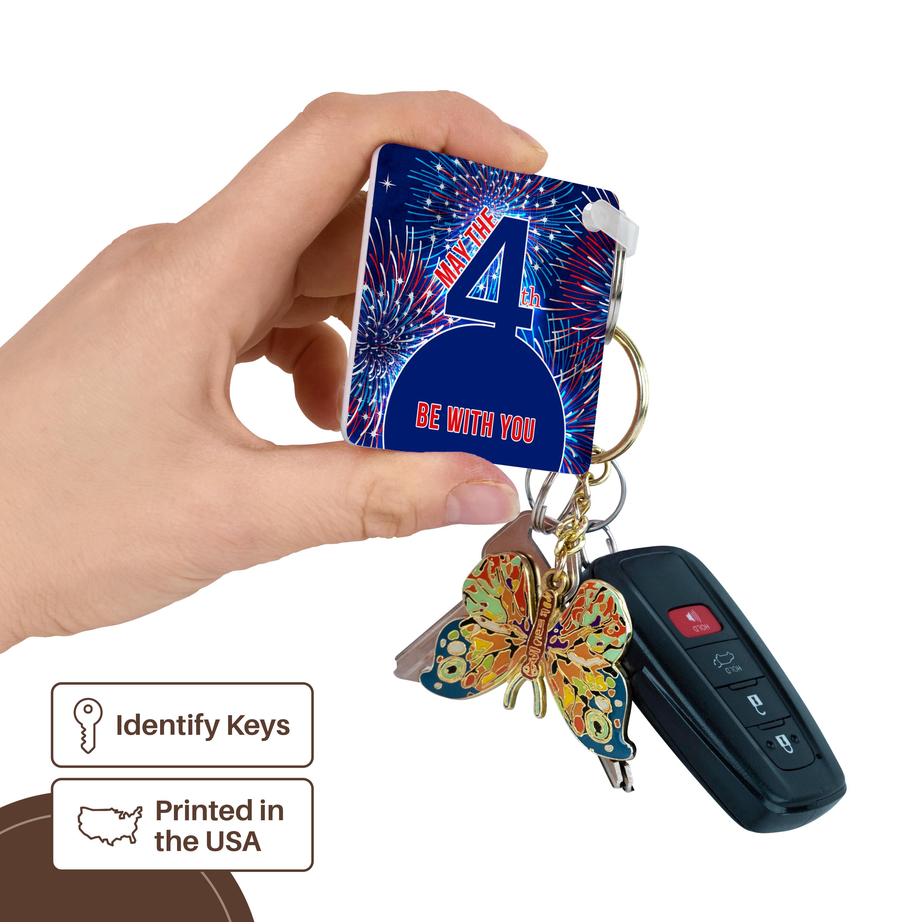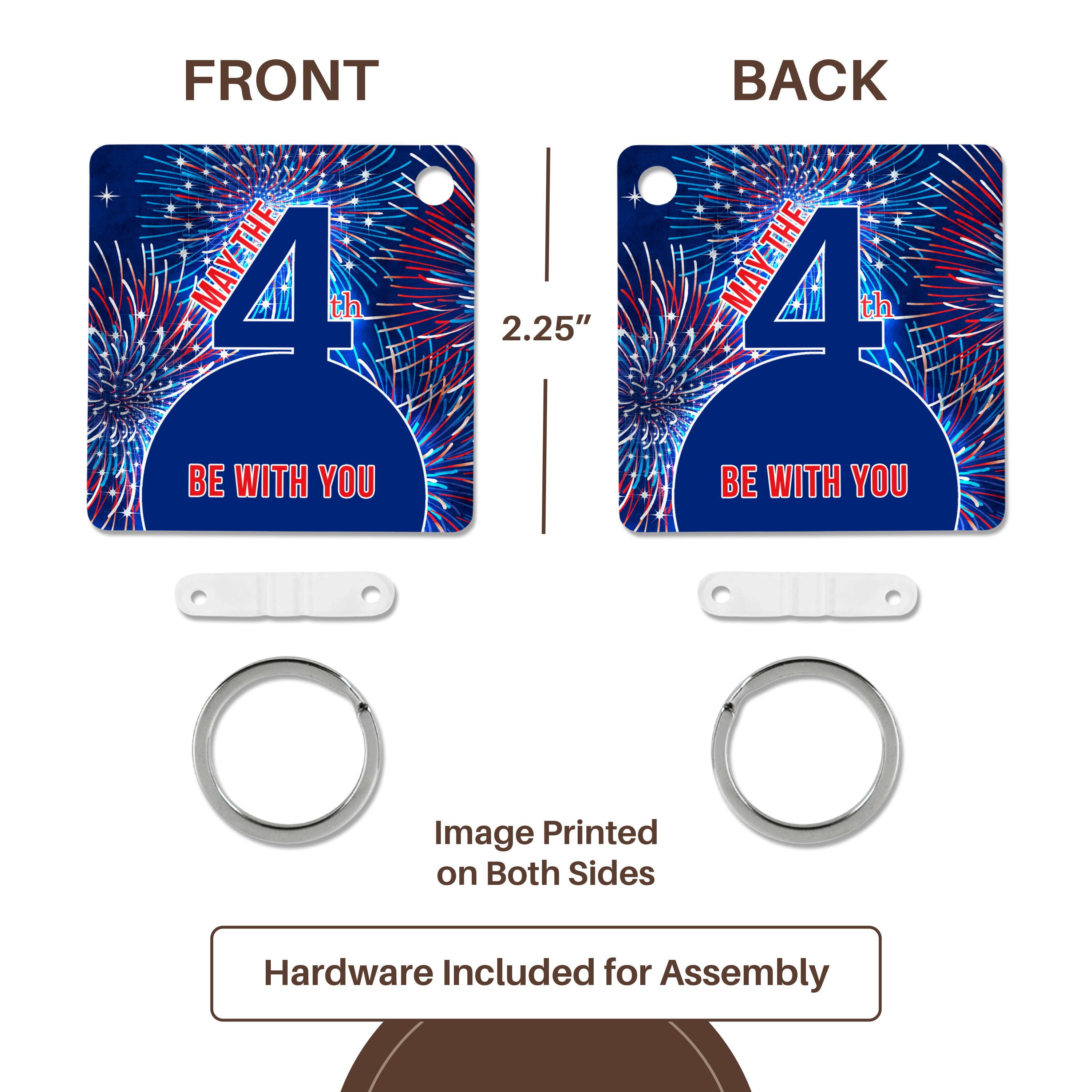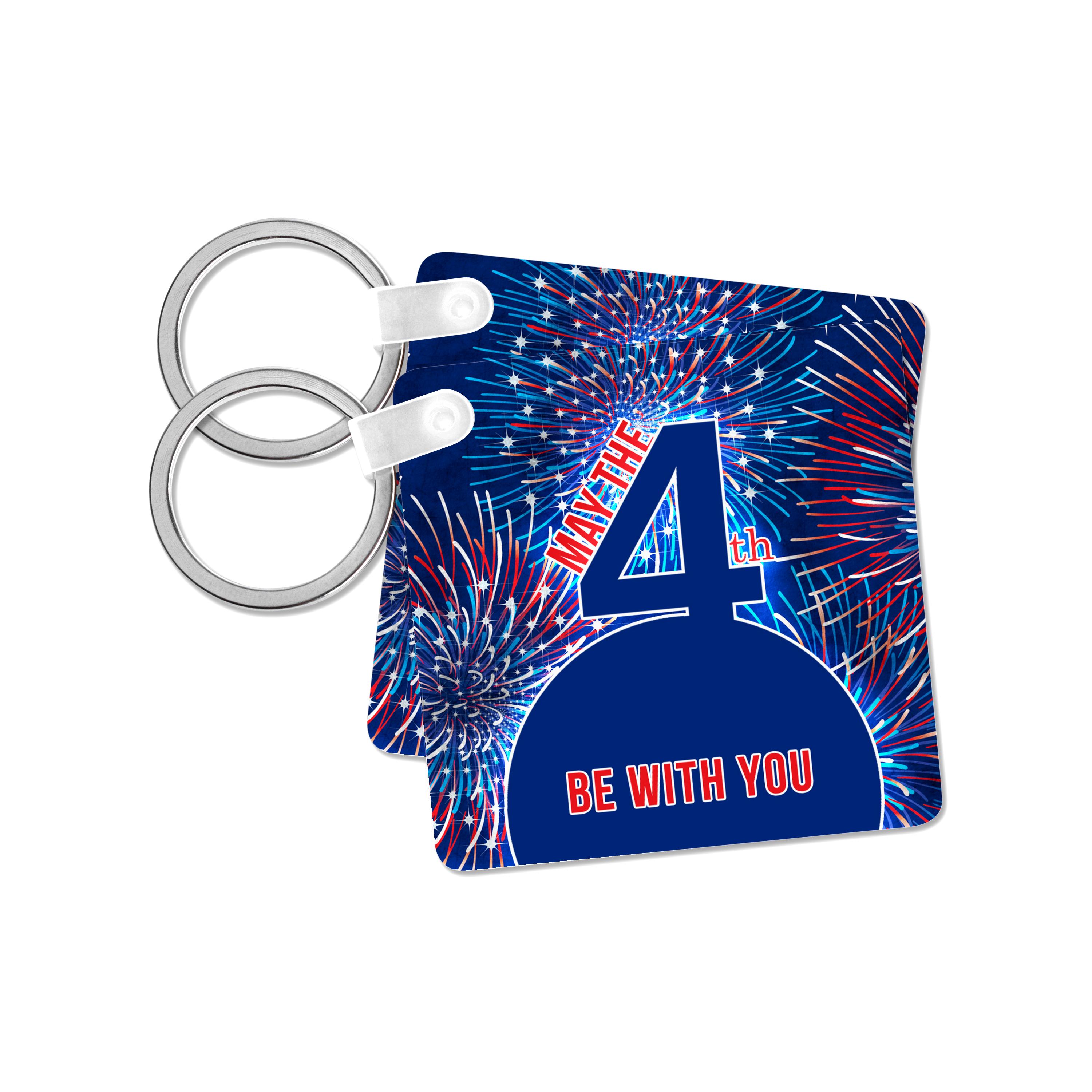 Independence Day Red White and Blue Fireworks with Humor Key Chain is available in sets of 2, 4 and 6; making them perfect for sharing. Image is printed on both sides and has a high gloss finish. Measures 2 3/8" x 2 3/8" x 3/8" and are made of heavy duty durable plastic. Rings and plastic clips included.