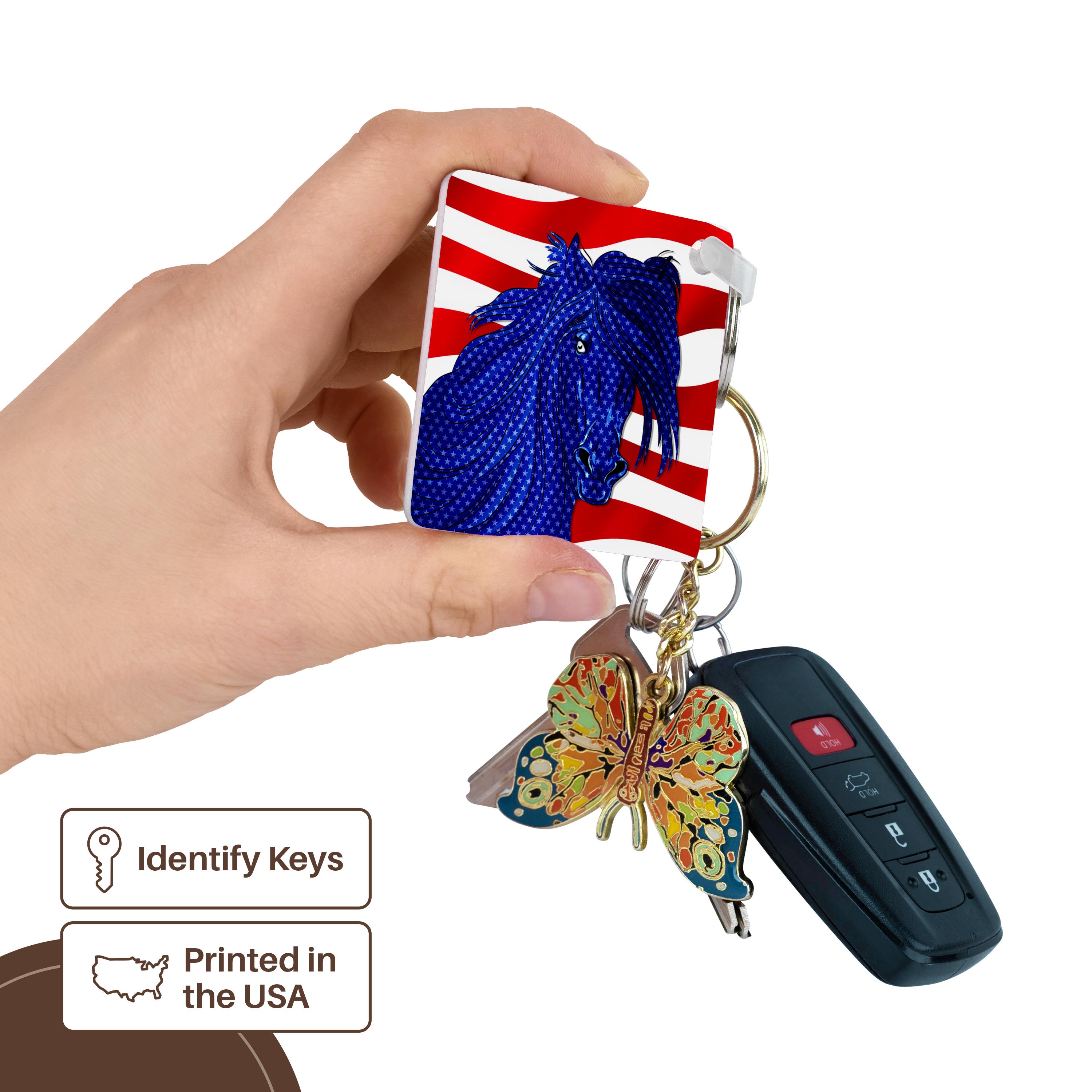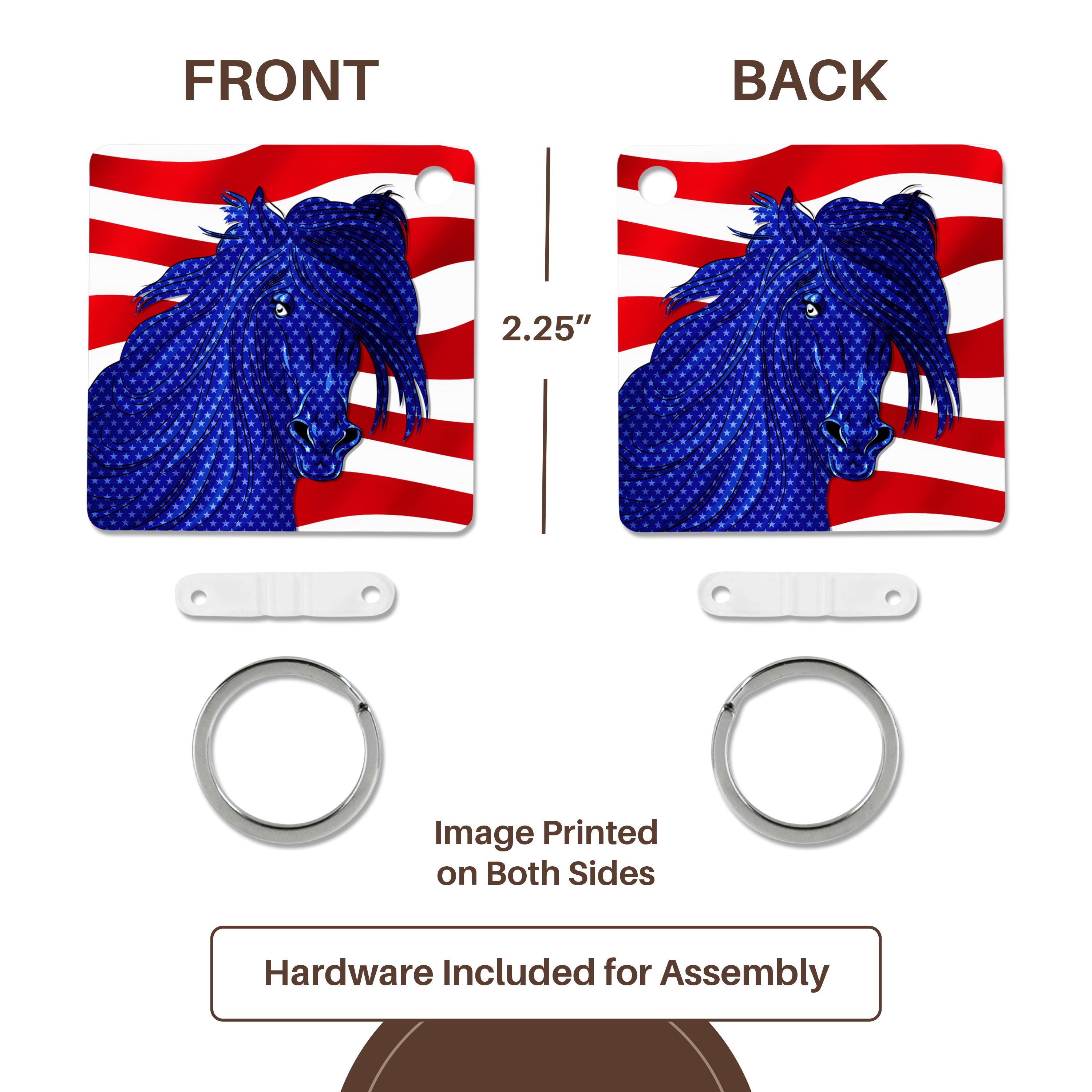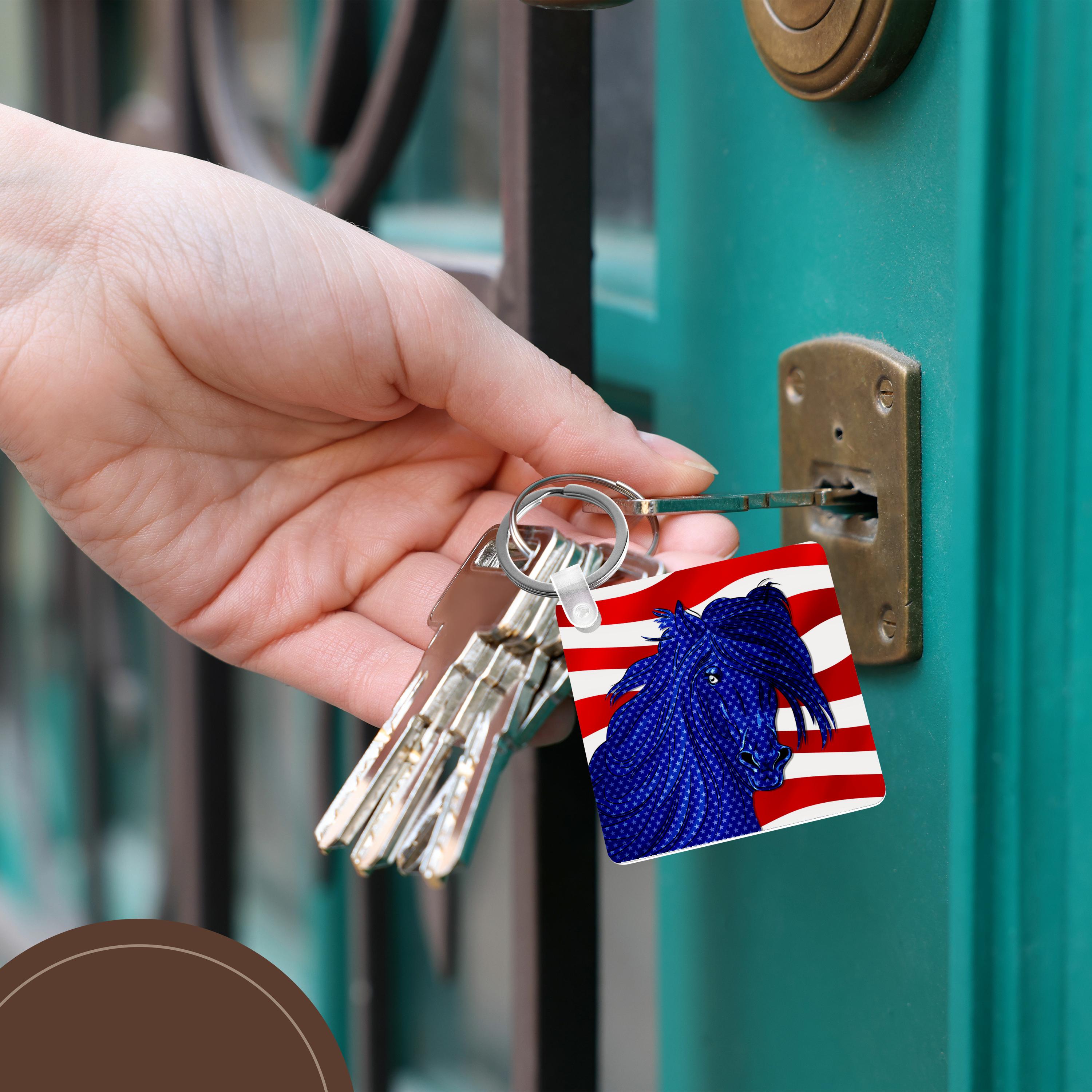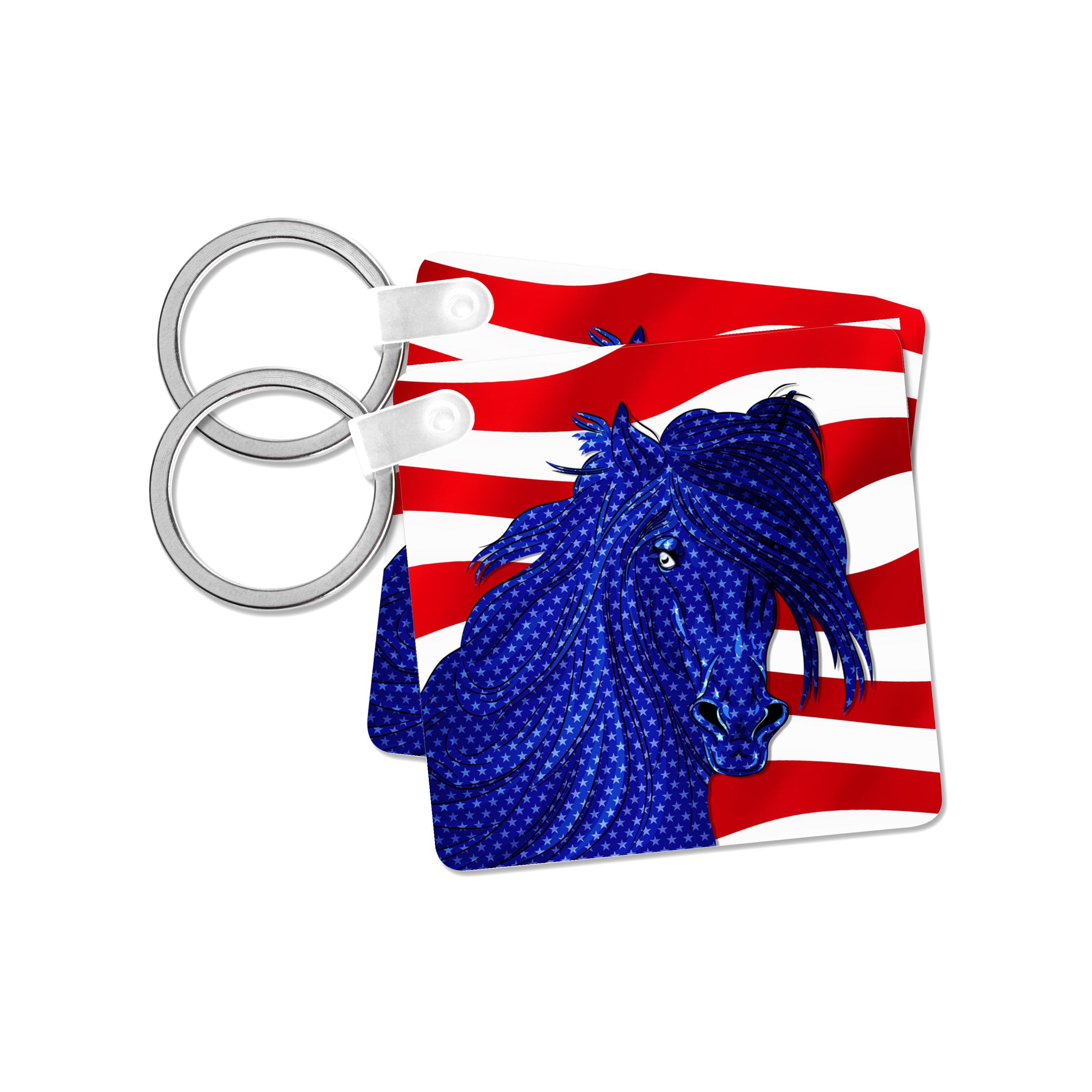 Key Chain - USA Stars and Stripes Majestic Western Horse in Red White and Blue Patriotic