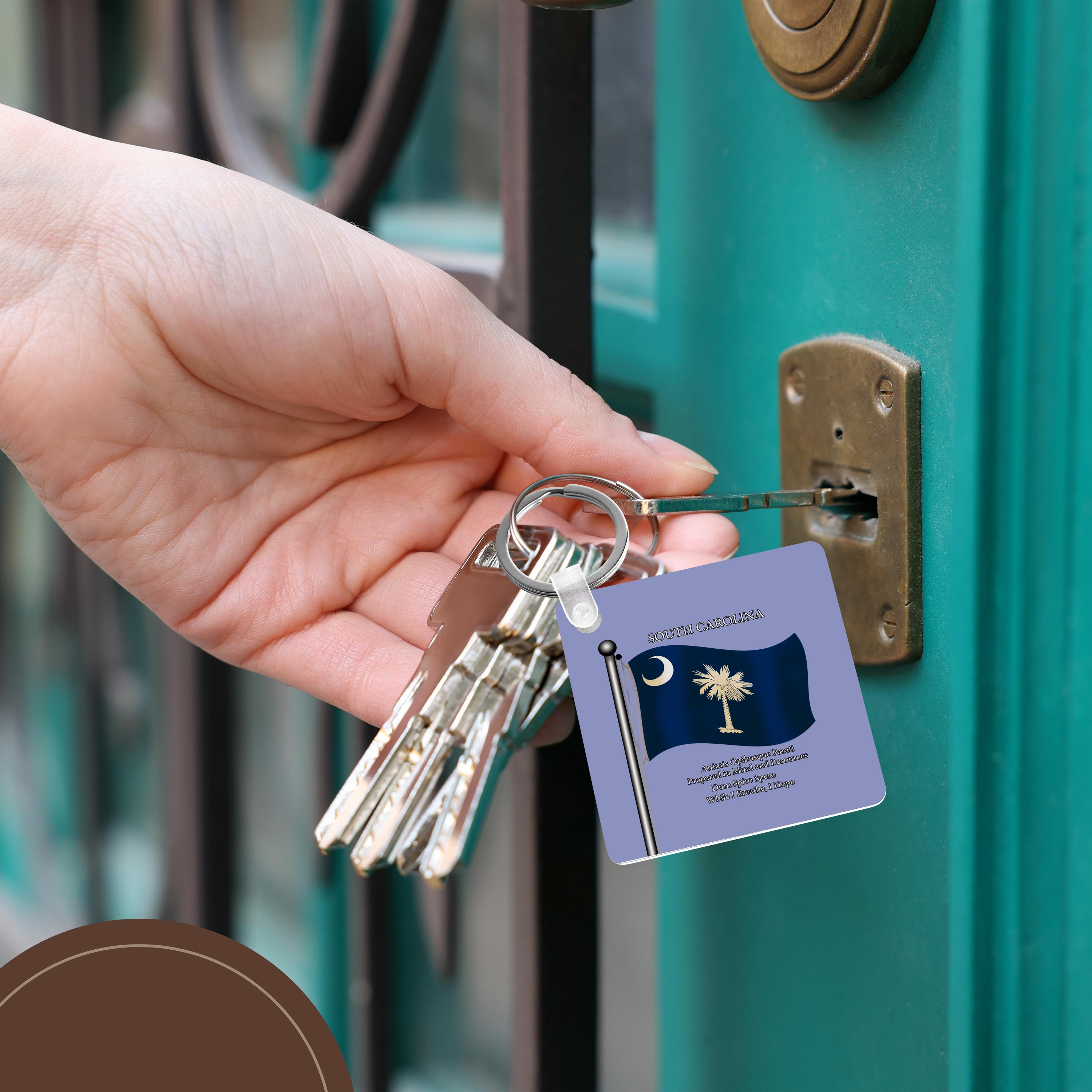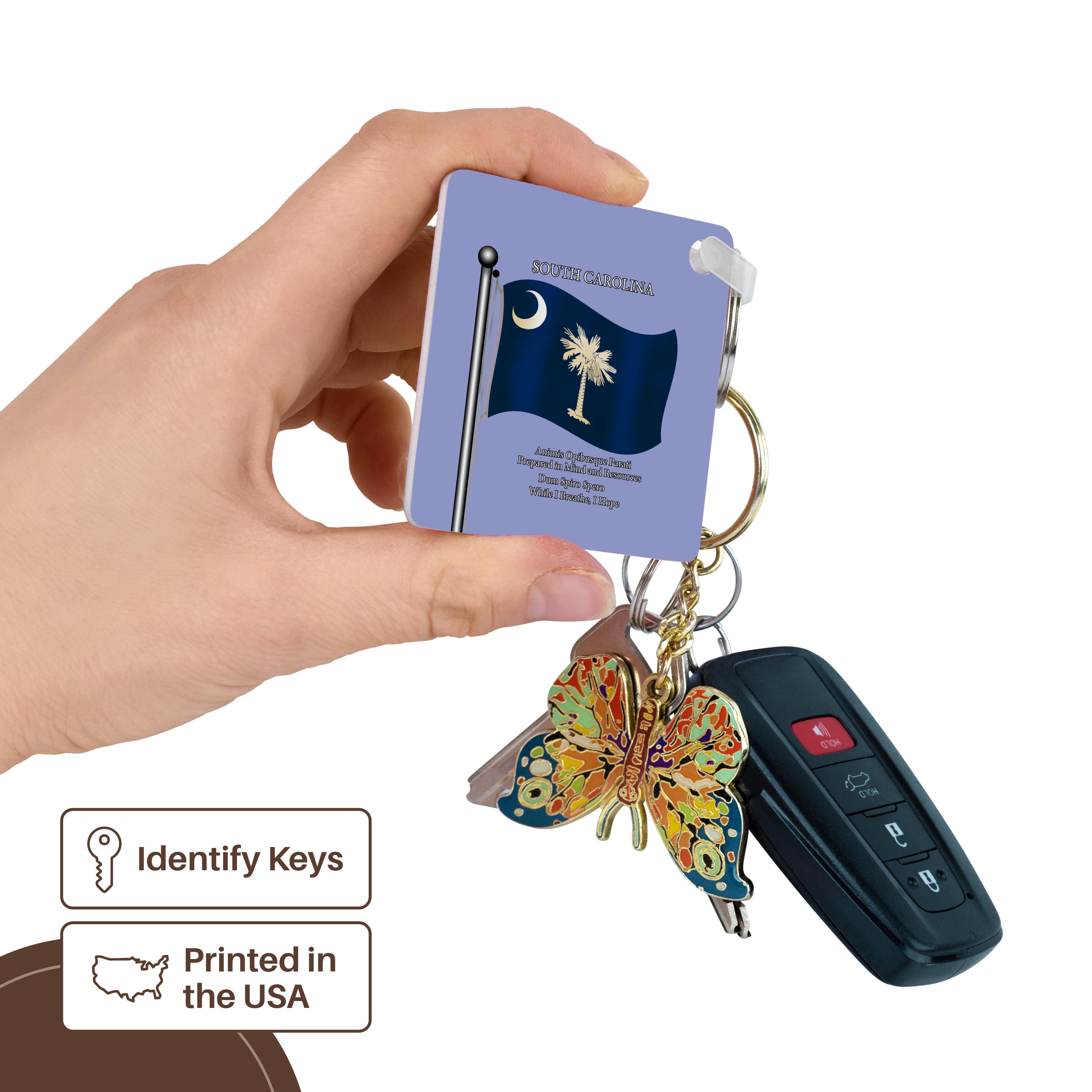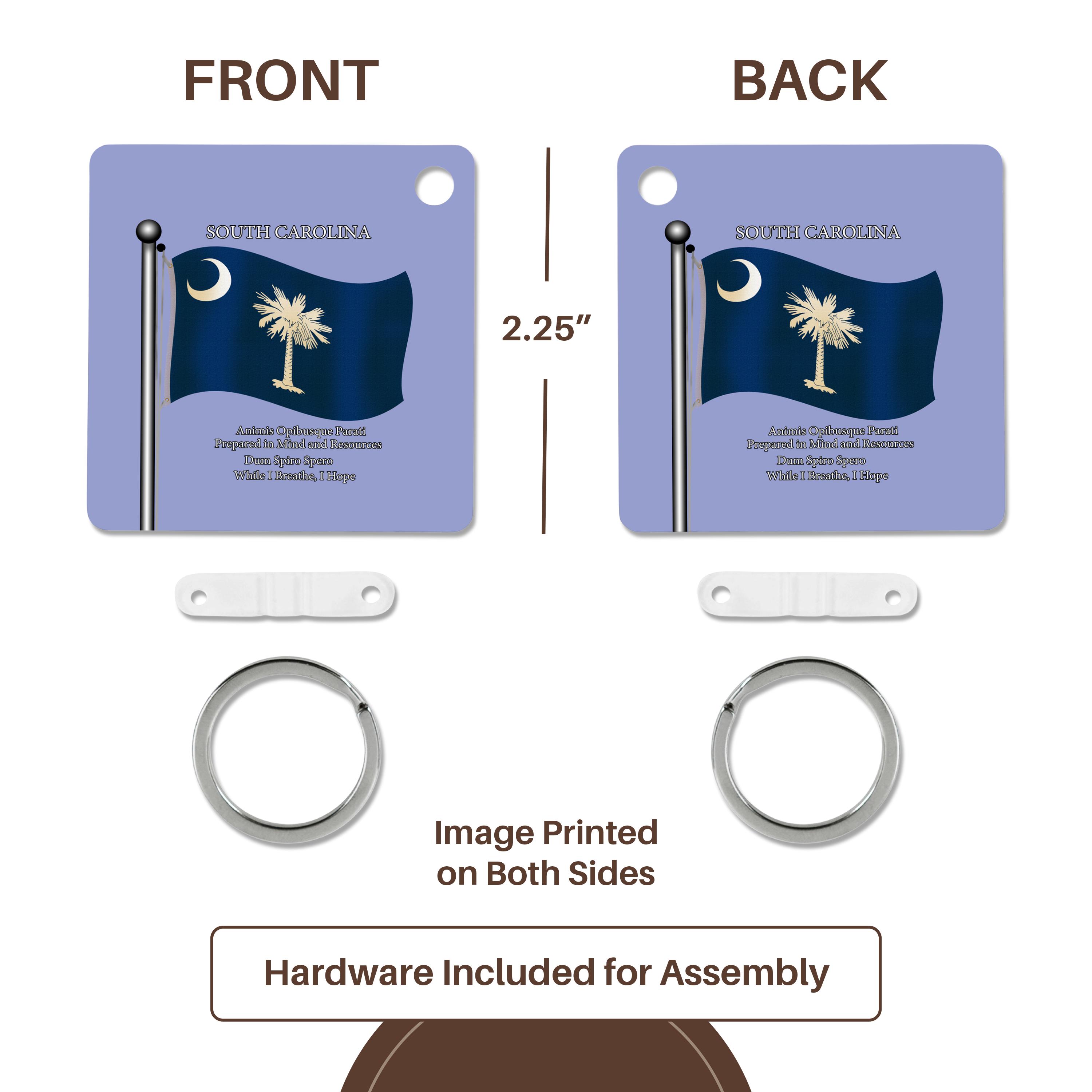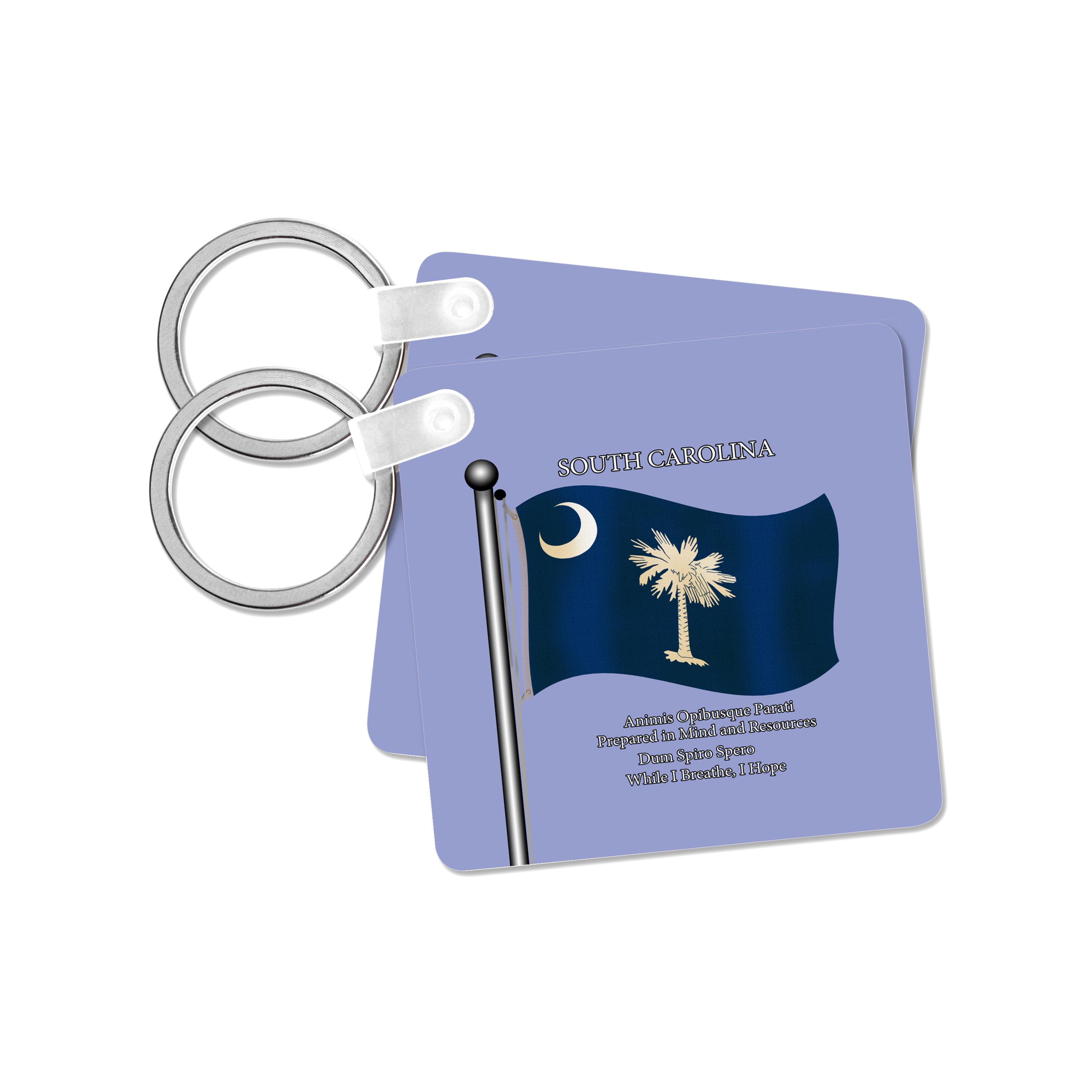 Key Chain - Waving Flag of South Carolina with State Motto in English and Latin Flags and Maps - States