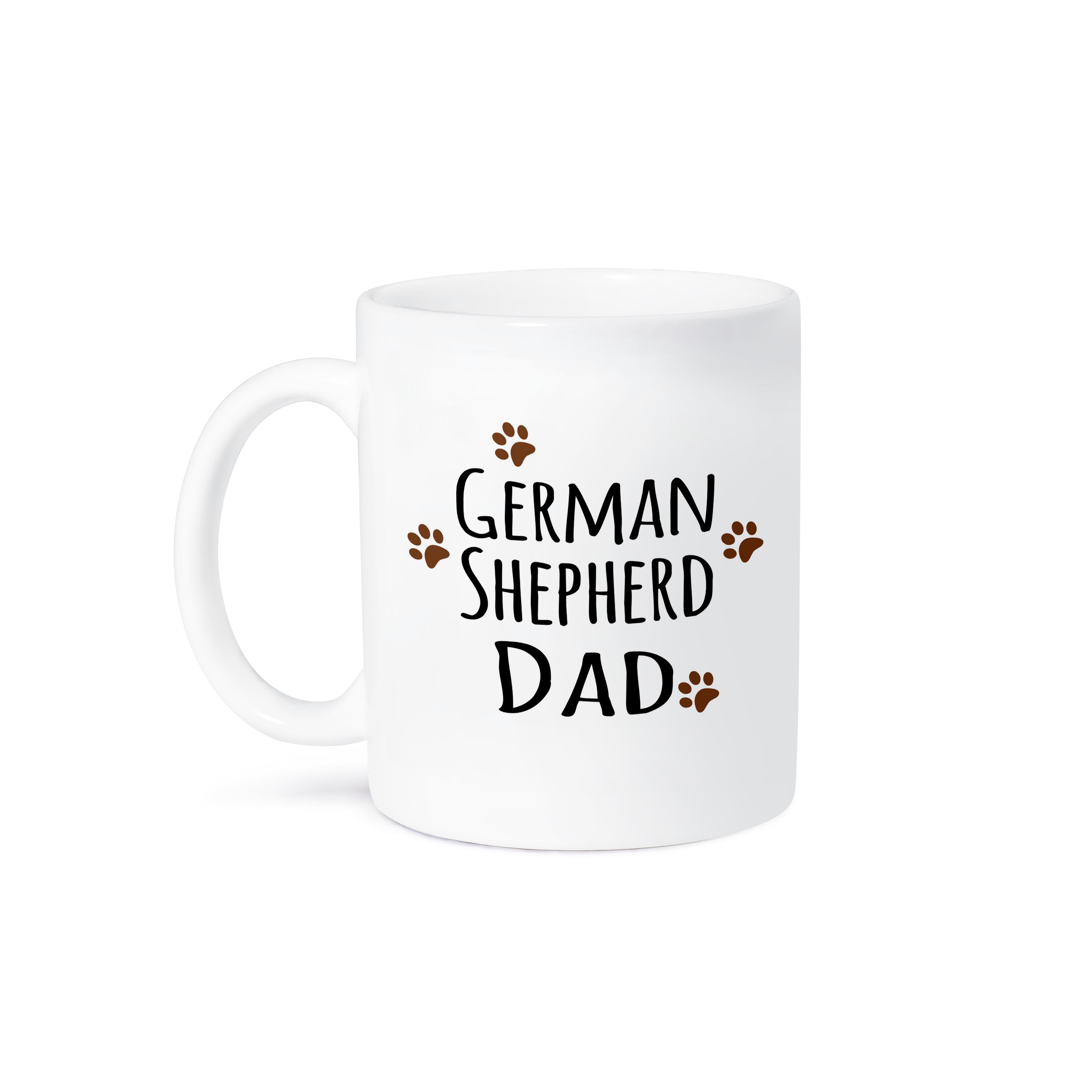 German Shepherd Dog Dad - Alsatian - Doggie by breed - brown muddy paw prints - doggy lover Mug is available in both 11 oz and 15 oz. Why drink out of an ordinary mug when a custom printed mug is so much cooler? This ceramic mug is lead free, microwave safe. Image is printed on both sides. Hand washing is recommended.