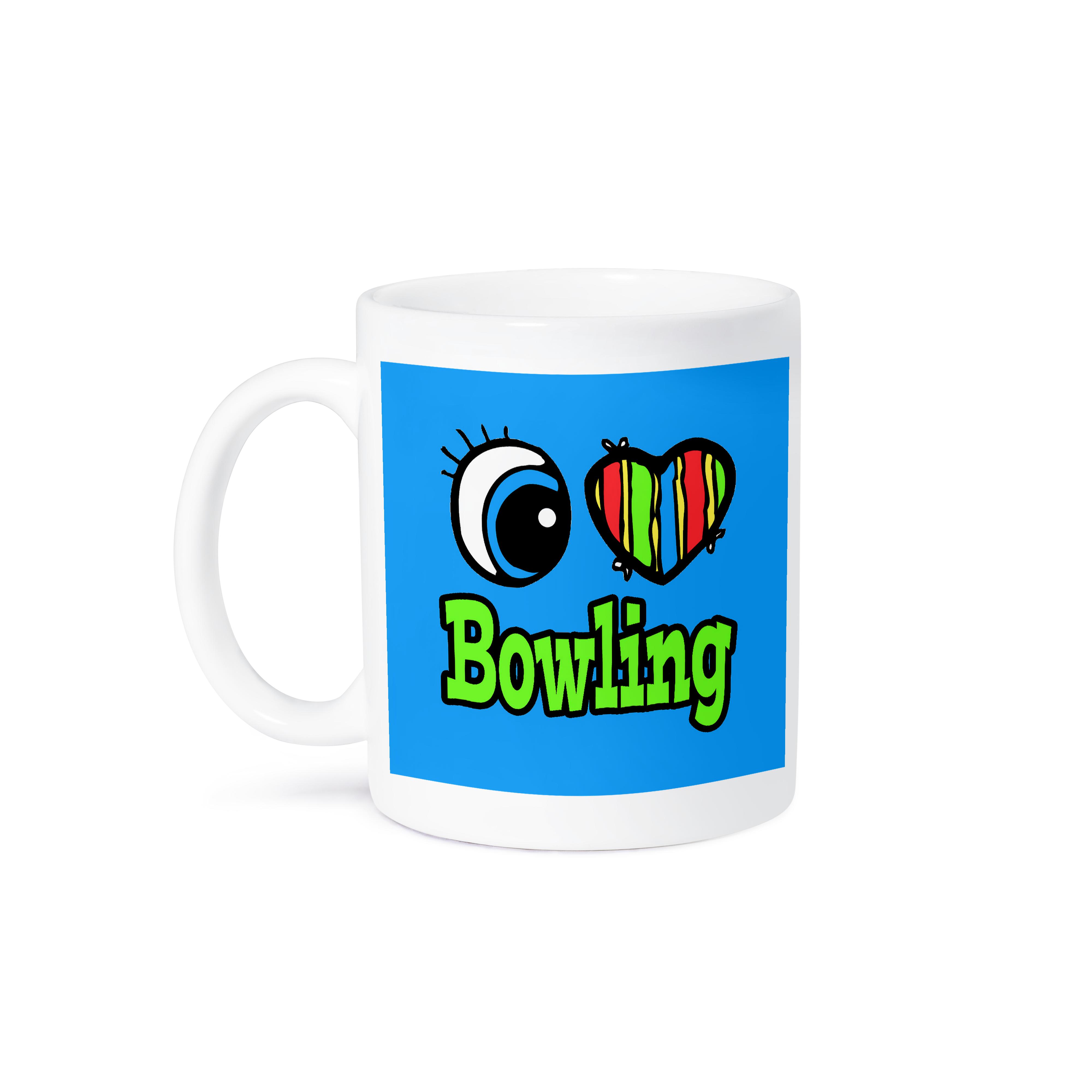 3dRose Dooni Designs Eye Heart I Love Designs - Bright Eye Heart I Love Bowling - Mugs (mug_105897)
