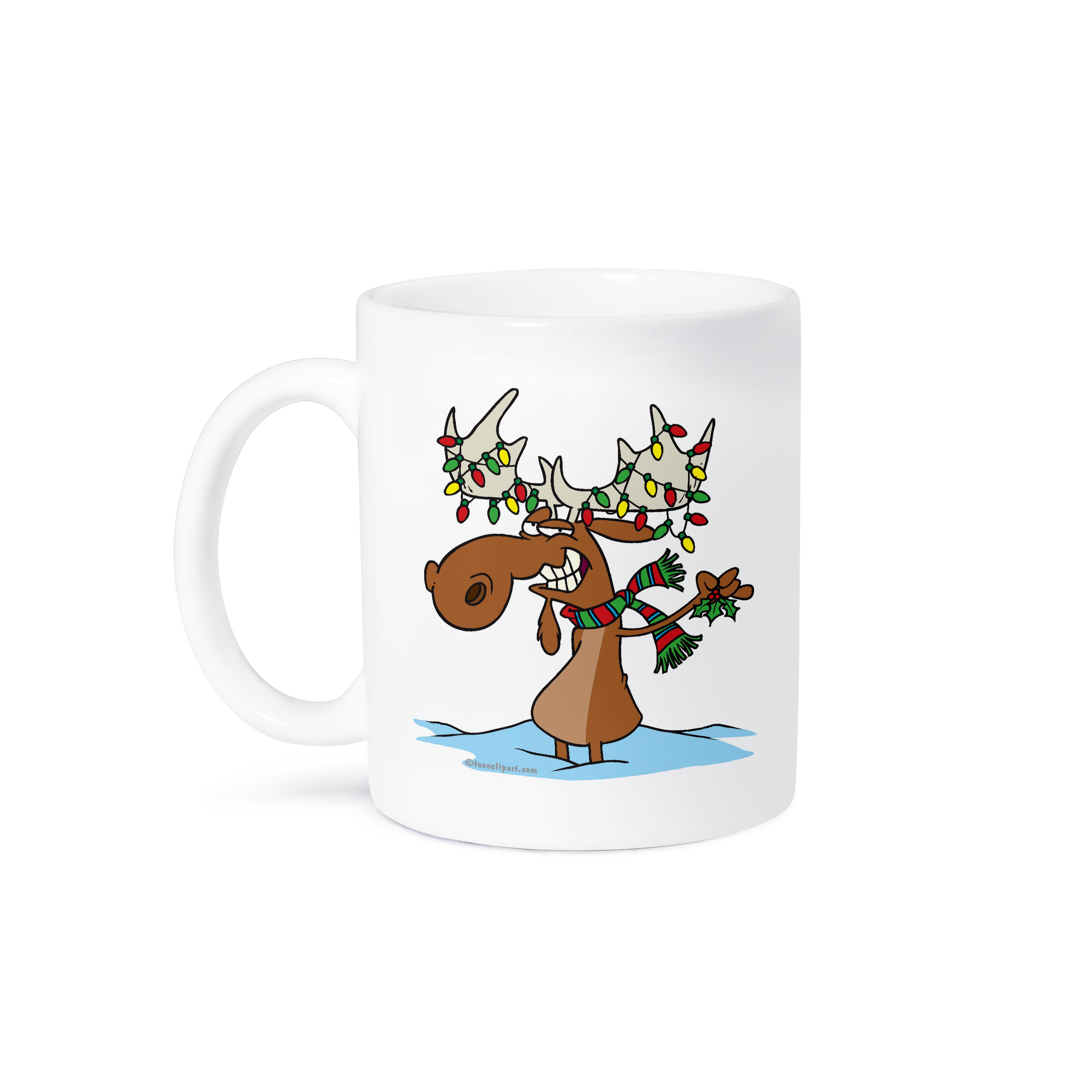 3dRose Dooni Designs Random Toons - Funny Silly Christmas Moose Cartoon - Mugs (mug_104122)