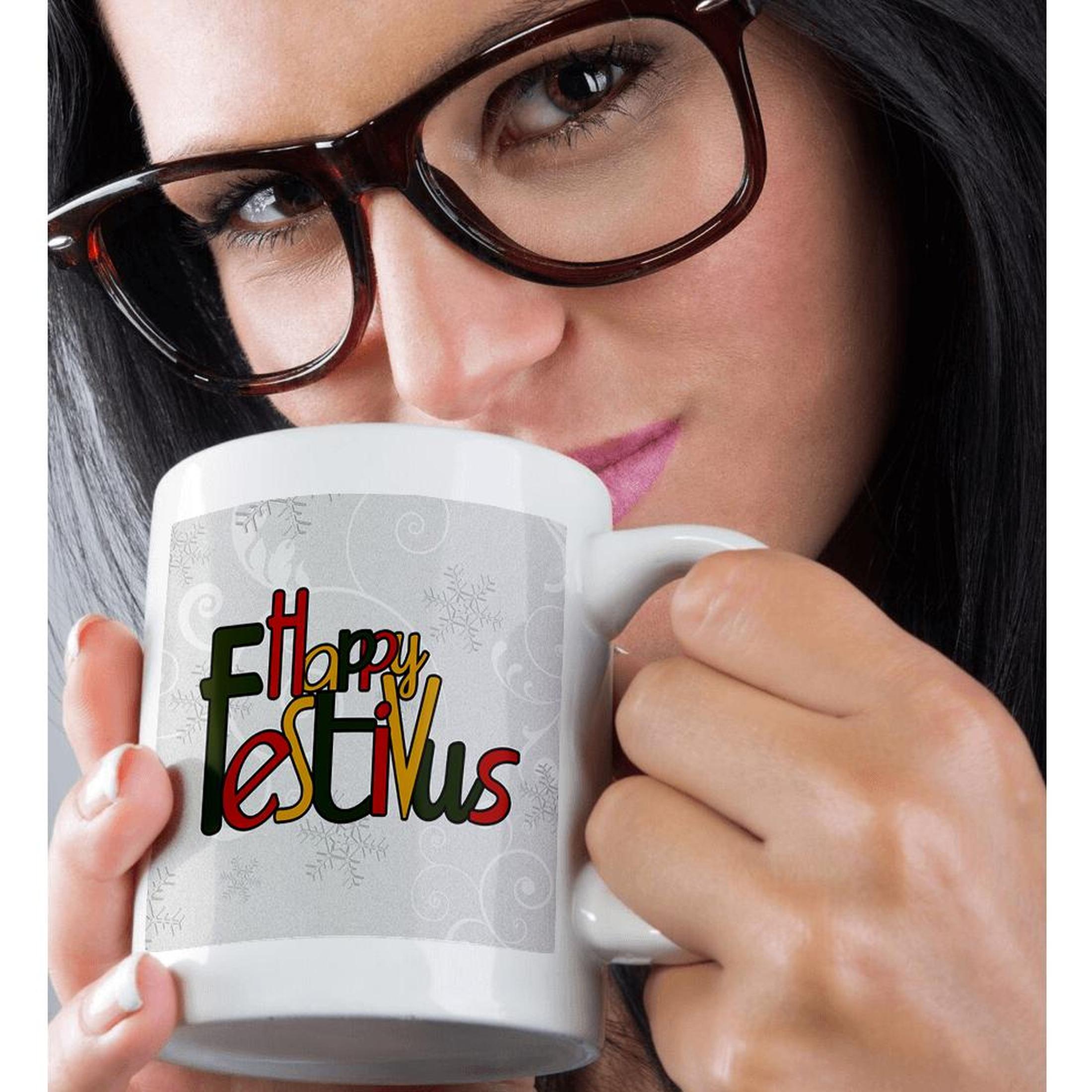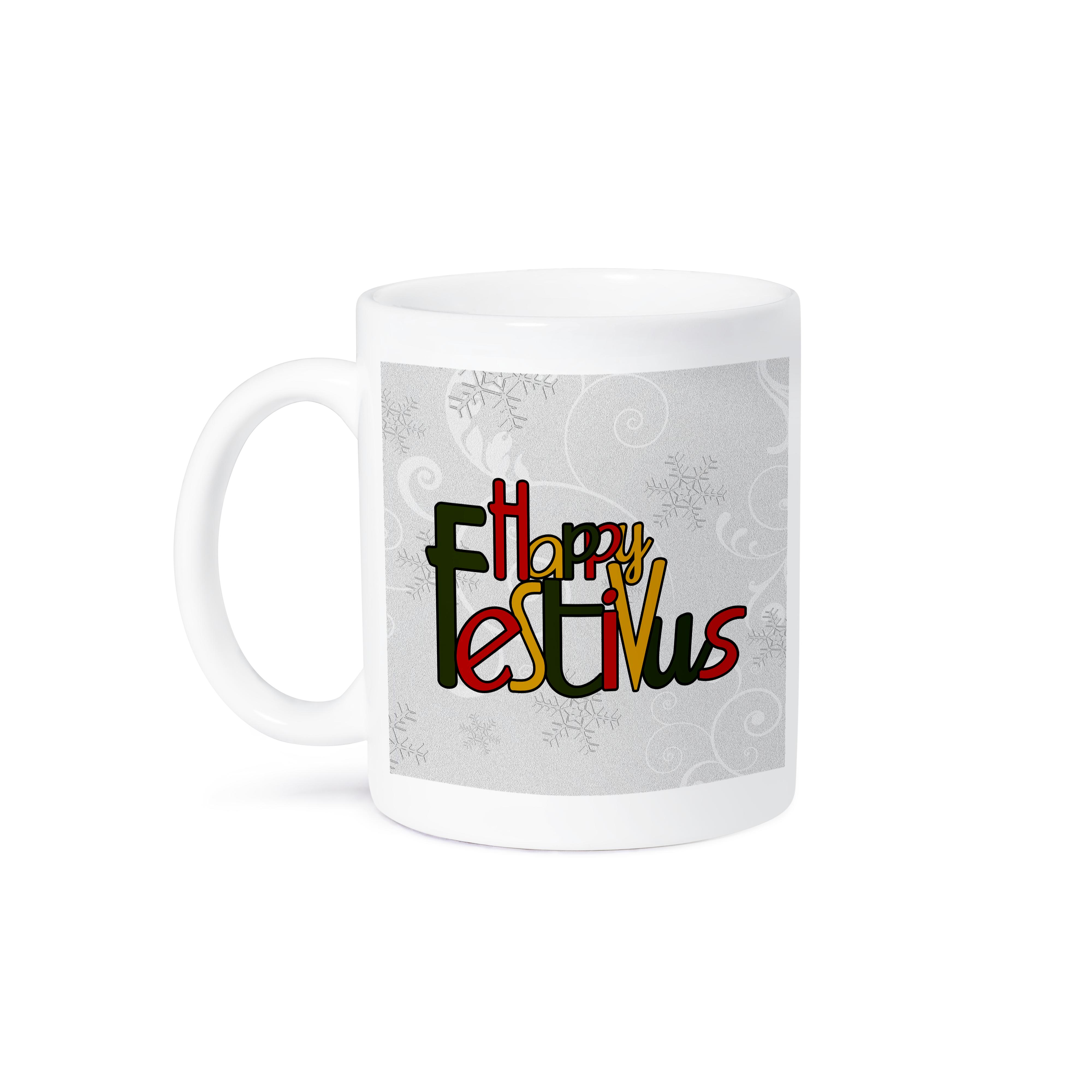 3dRose Happy Festivus Red, Gold, Green, Snowflake Background Silver, White - Mugs (mug_101842)