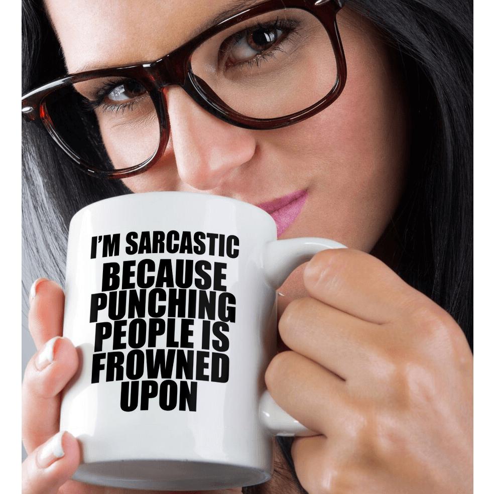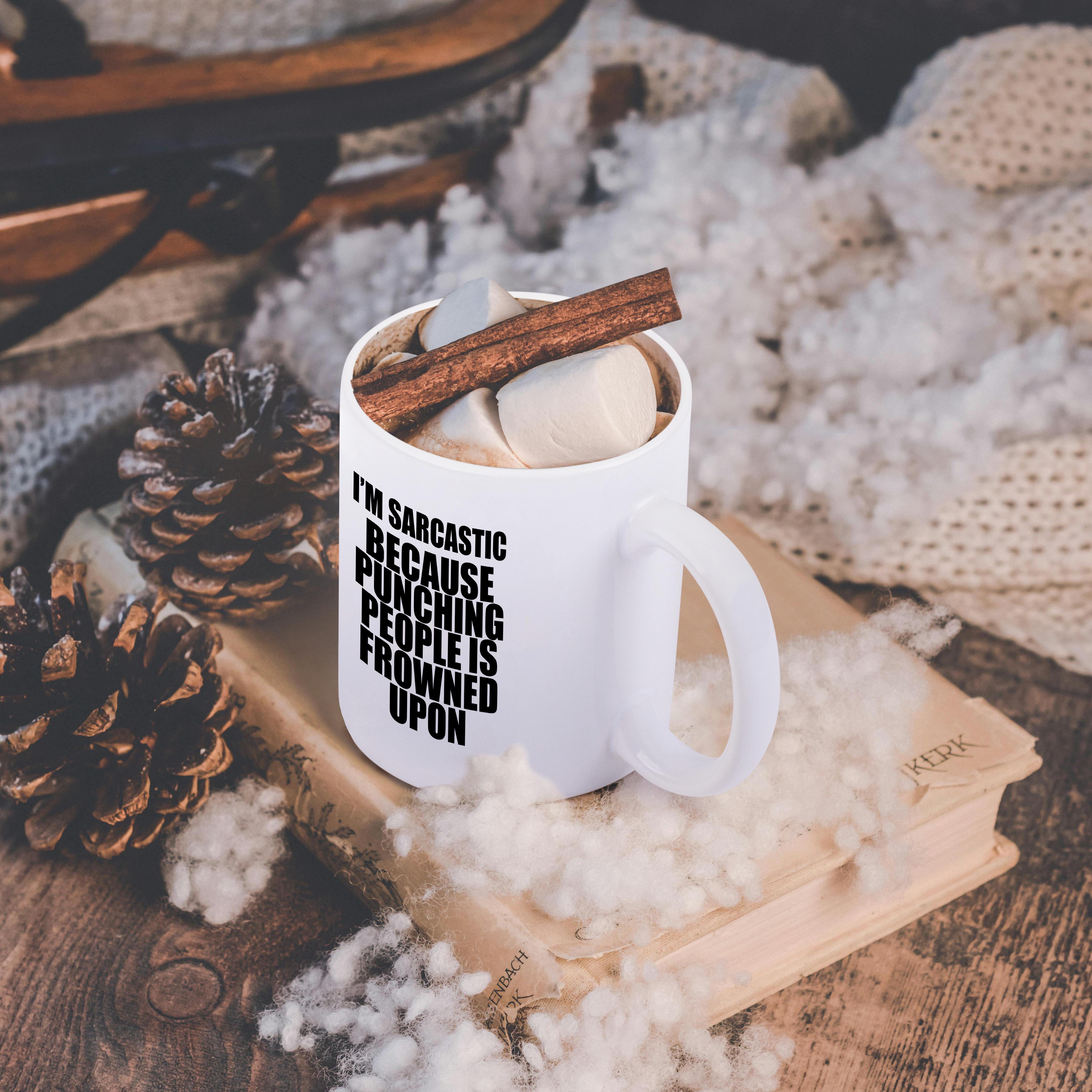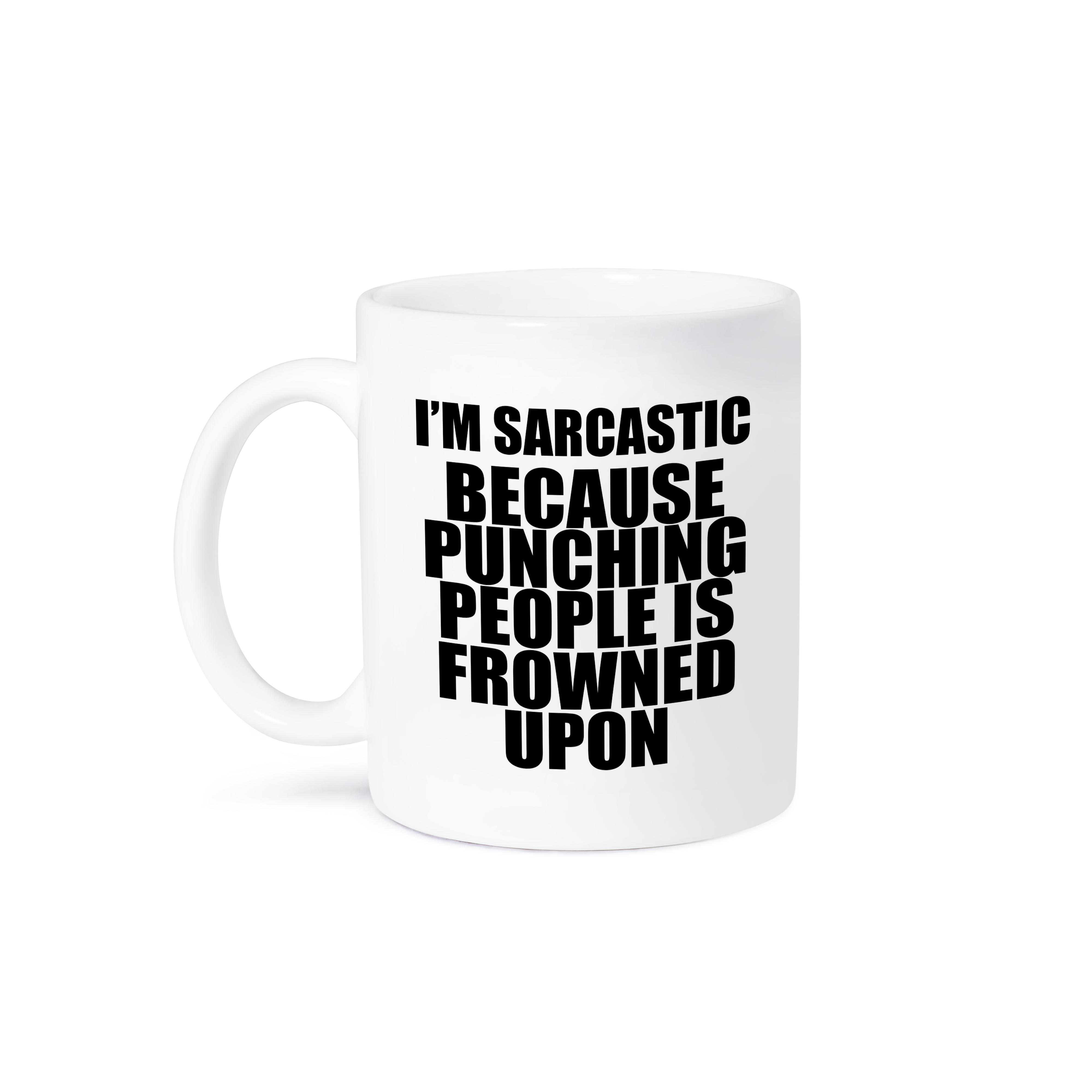 Im sarcastic because punching people is frowned upon, Mug is available in both 11 oz and 15 oz. Why drink out of an ordinary mug when a custom printed mug is so much cooler? This ceramic mug is lead free, microwave safe. Image is printed on both sides. Hand washing is recommended.