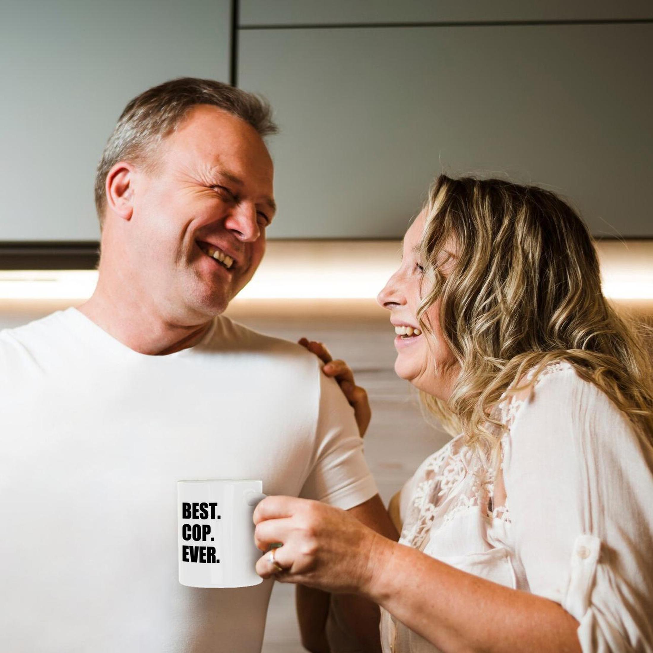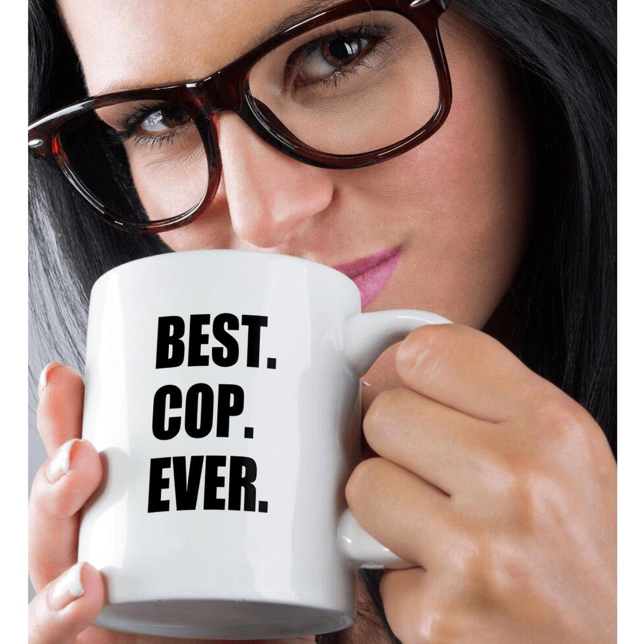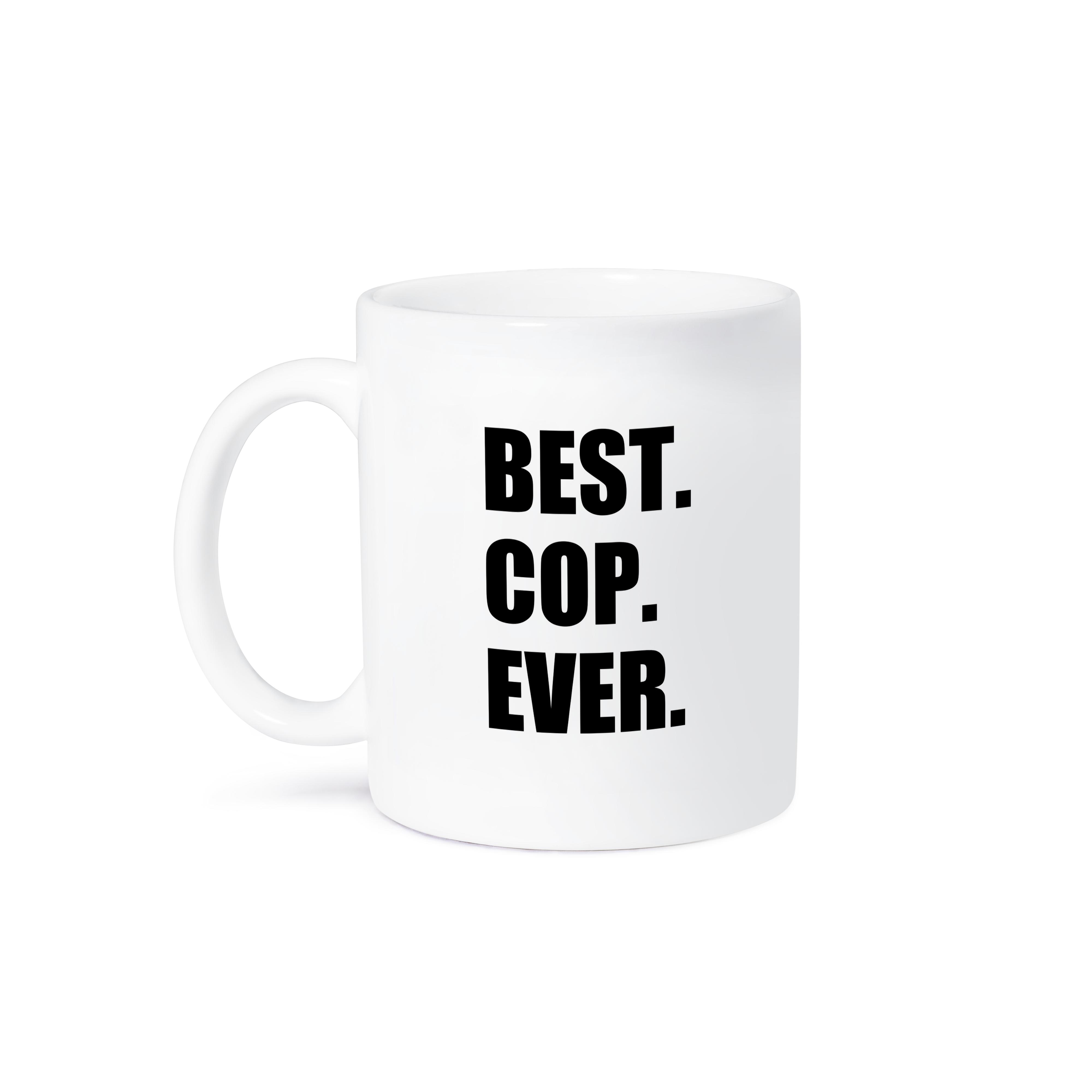 Best Cop Ever - fun text gifts for worlds greatest police officer Mug is available in both 11 oz and 15 oz. Why drink out of an ordinary mug when a custom printed mug is so much cooler? This ceramic mug is lead free, microwave safe. Image is printed on both sides. Hand washing is recommended.