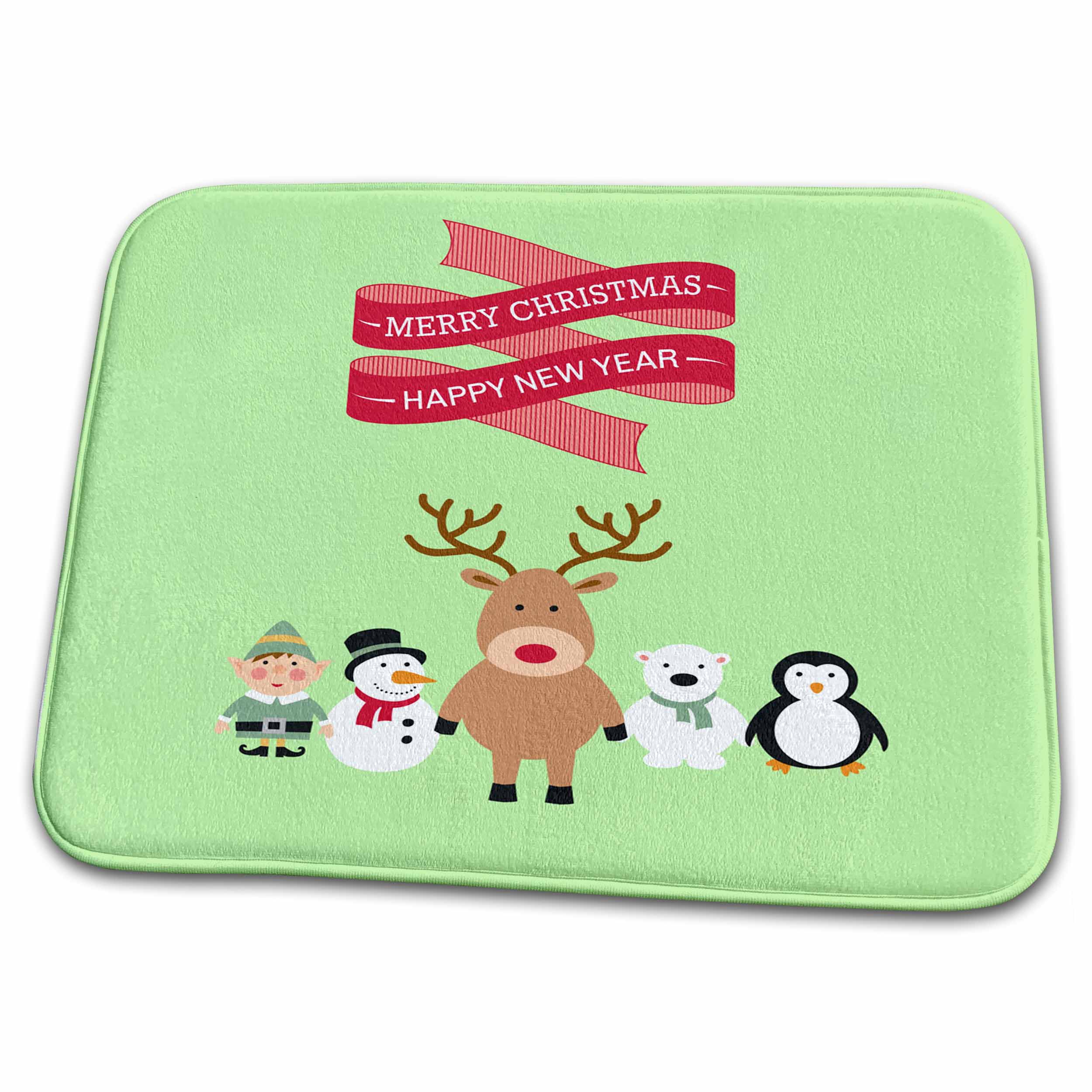 Dish Drying Mat - Merry Christmas and Happy New Year with cute holiday friends Christmas
