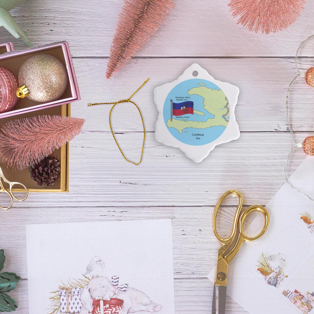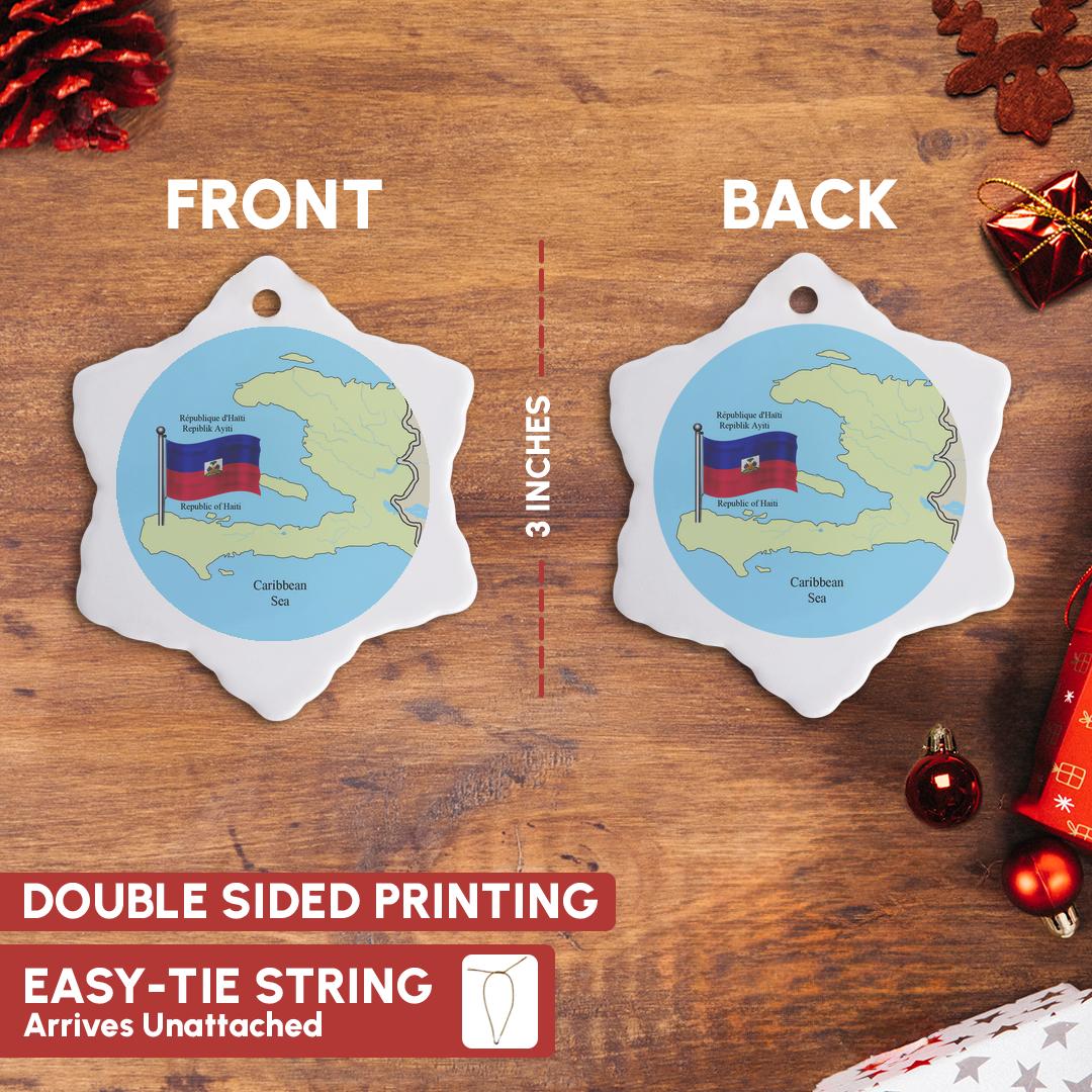3dRose 777images Flags and Maps - North America - The Flag, map of Haiti with The Republic of Haiti in English, French, Haitian Creole - Ornaments (ORN_63254)