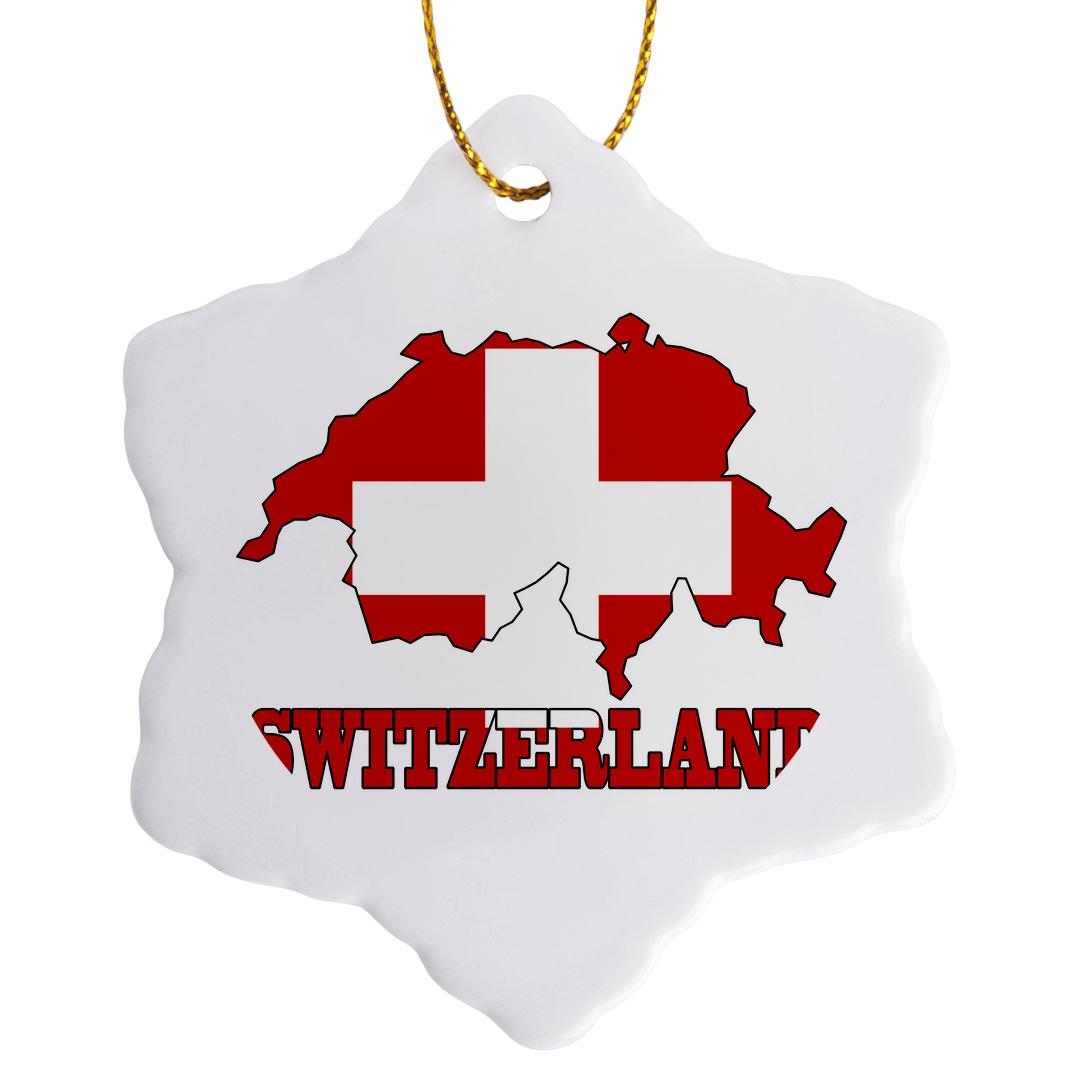 3dRose 777images Flags and Maps - The Flag of Switzerland in The Outline map of The Country and Name, Switzerland. - Ornaments (ORN_63210)