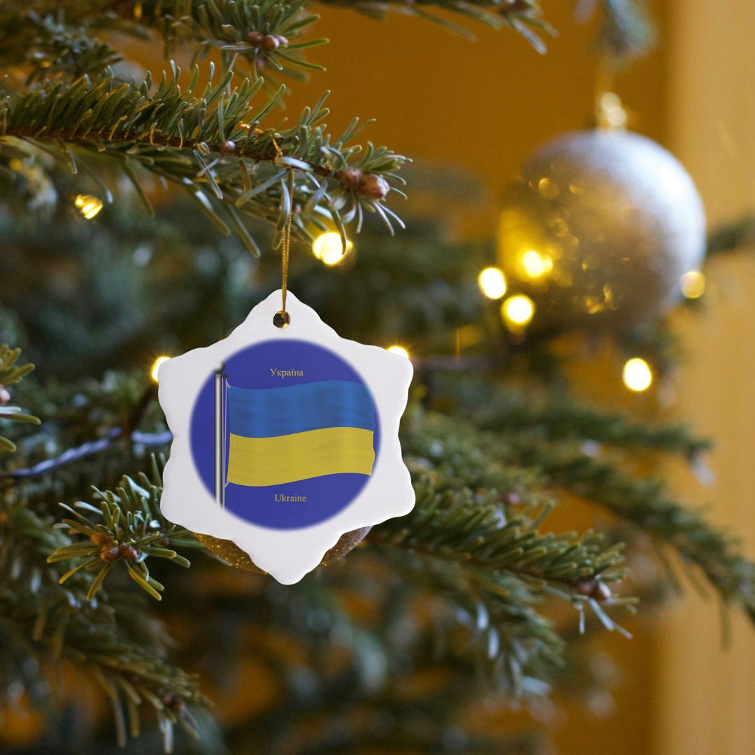 3dRose 777images Flags and Maps - The Flag of The Ukraine on a Blue Background with Ukraine in English and Ukrainian - Ornaments (ORN_63215)