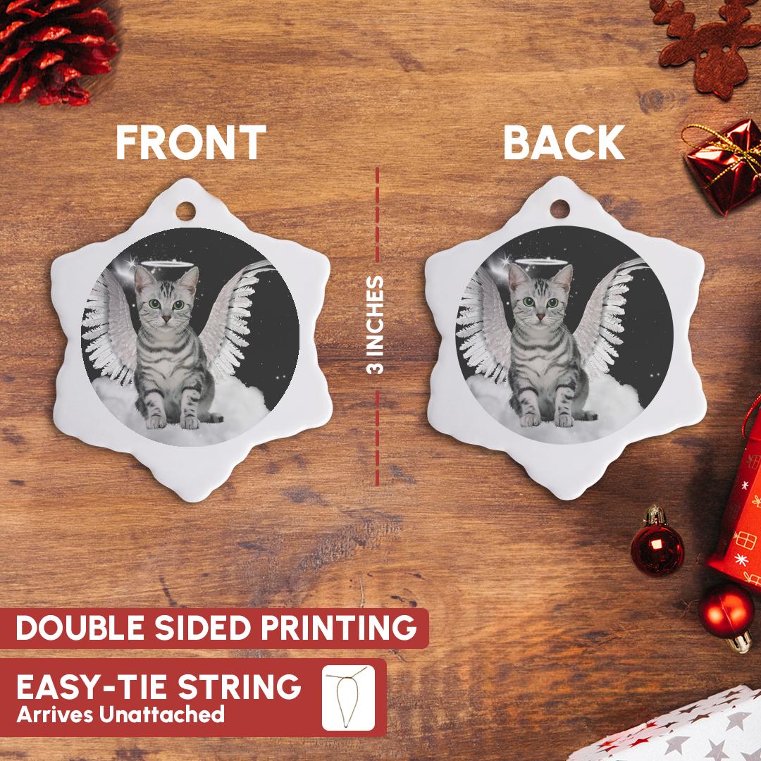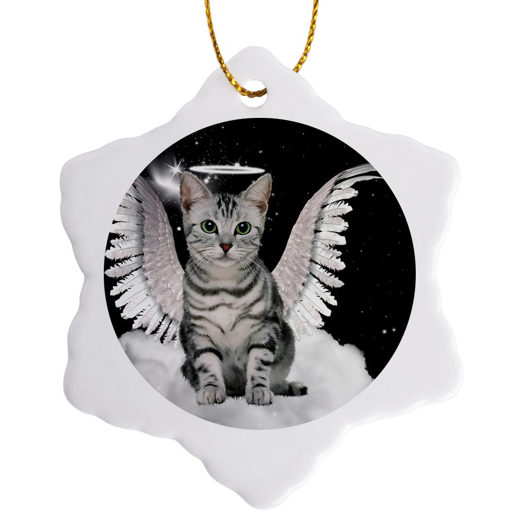 3dRose Doreen Erhardt Cats - Gray Tabby Cat Angel Sitting on a Cloud with a Cute Halo and Angel Wings - Ornaments (ORN_62893)