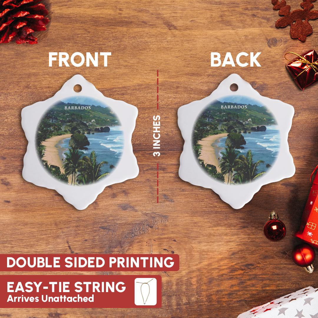 Barbados Beach Ornament is a perfect addition to your tree or as a window decoration. This glossy porcelain ornament is a great gift for family and friends, commemorating each holiday or special occasion. Image printed on both sides; measures 3 inches. A strand of gold thread makes it easy to display this fantastic keepsake.