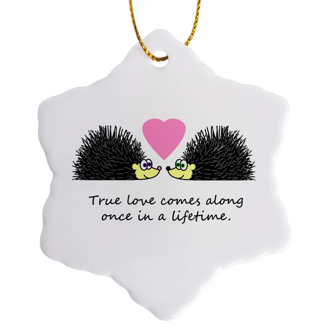 3dRose Janna Salak Designs Love - True Love Comes Along Once in a Lifetime – Cute Hedgehog Love Design - Ornaments (ORN_6307)