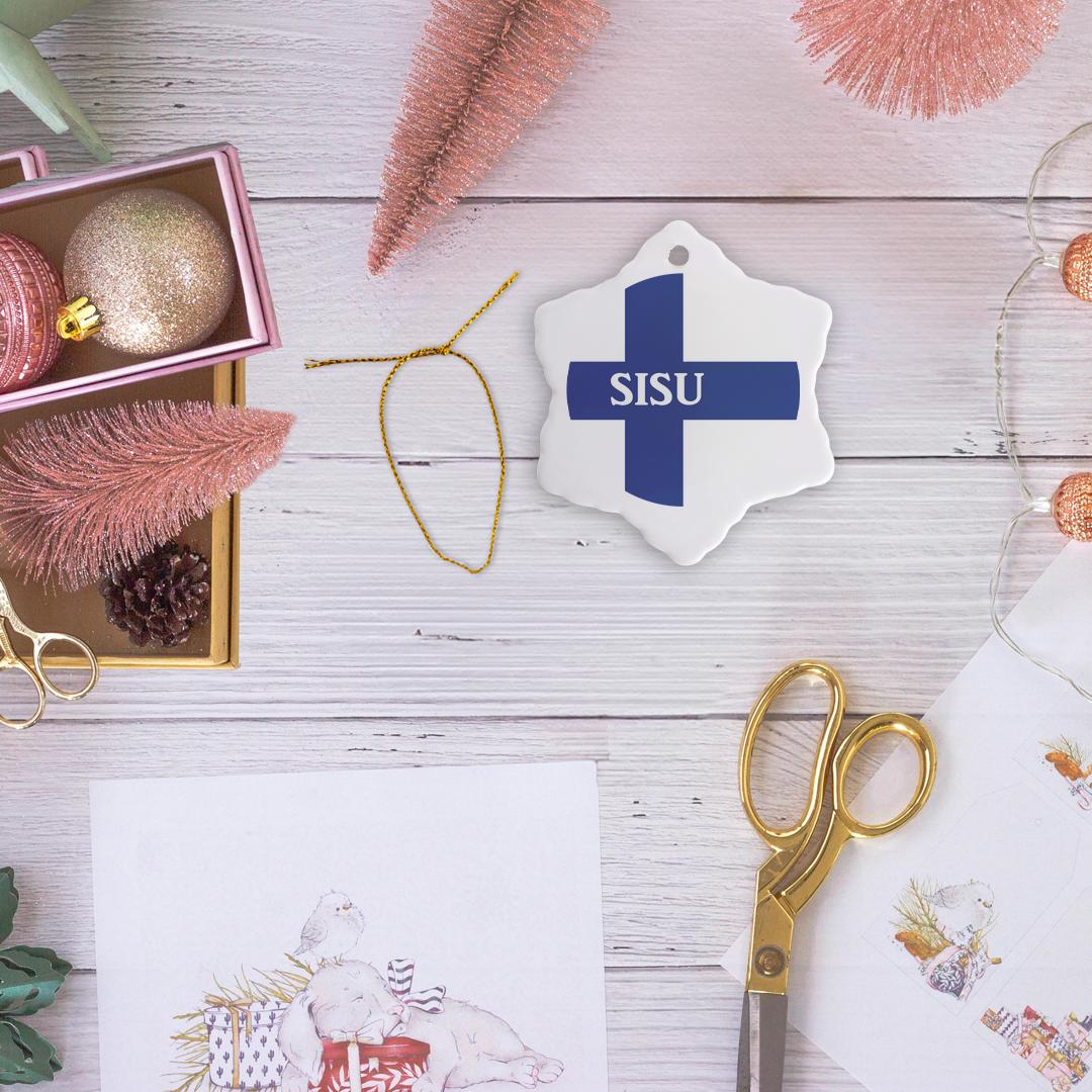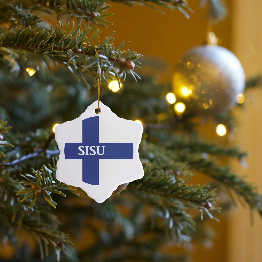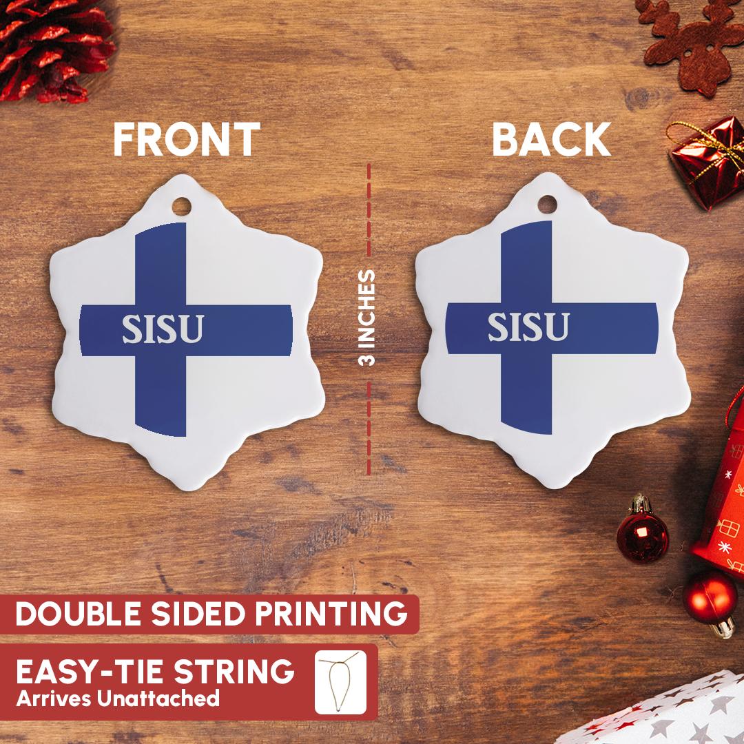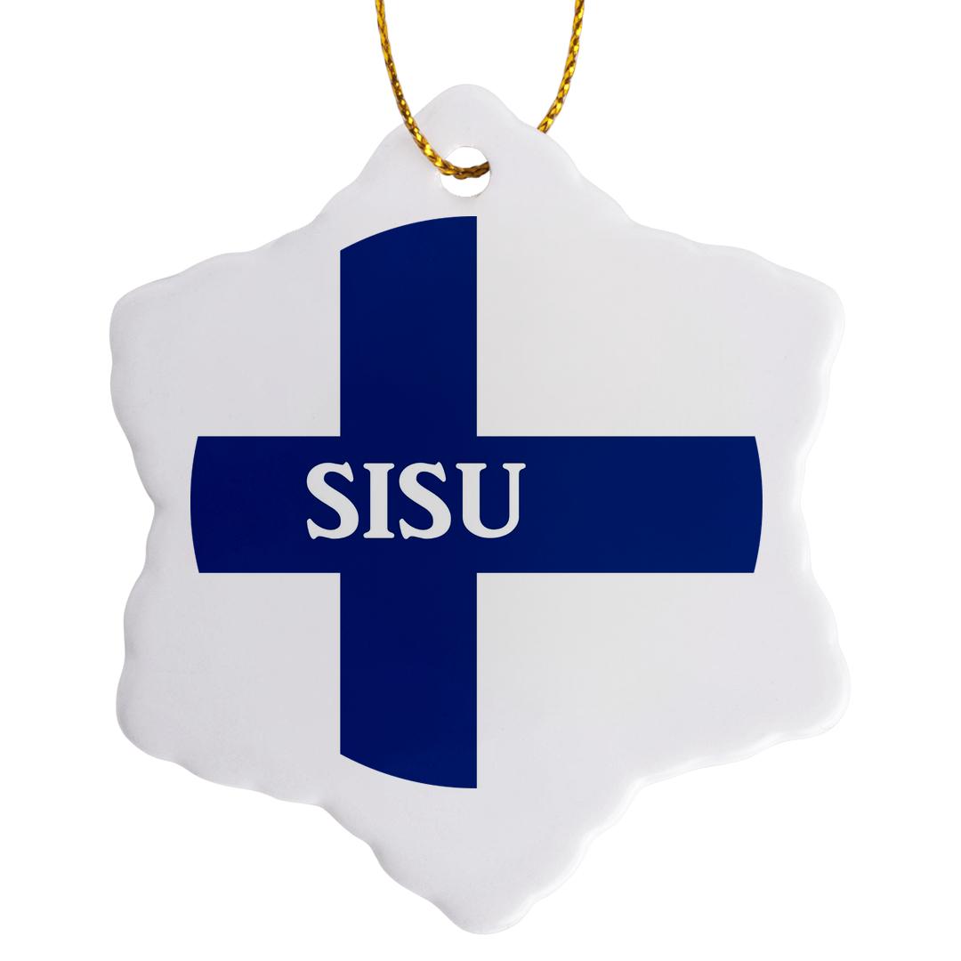 3dRose Sisu on Finland Flag - Finnish Word for Finn Stoic Strength of Will - Ornaments (ORN_321409)