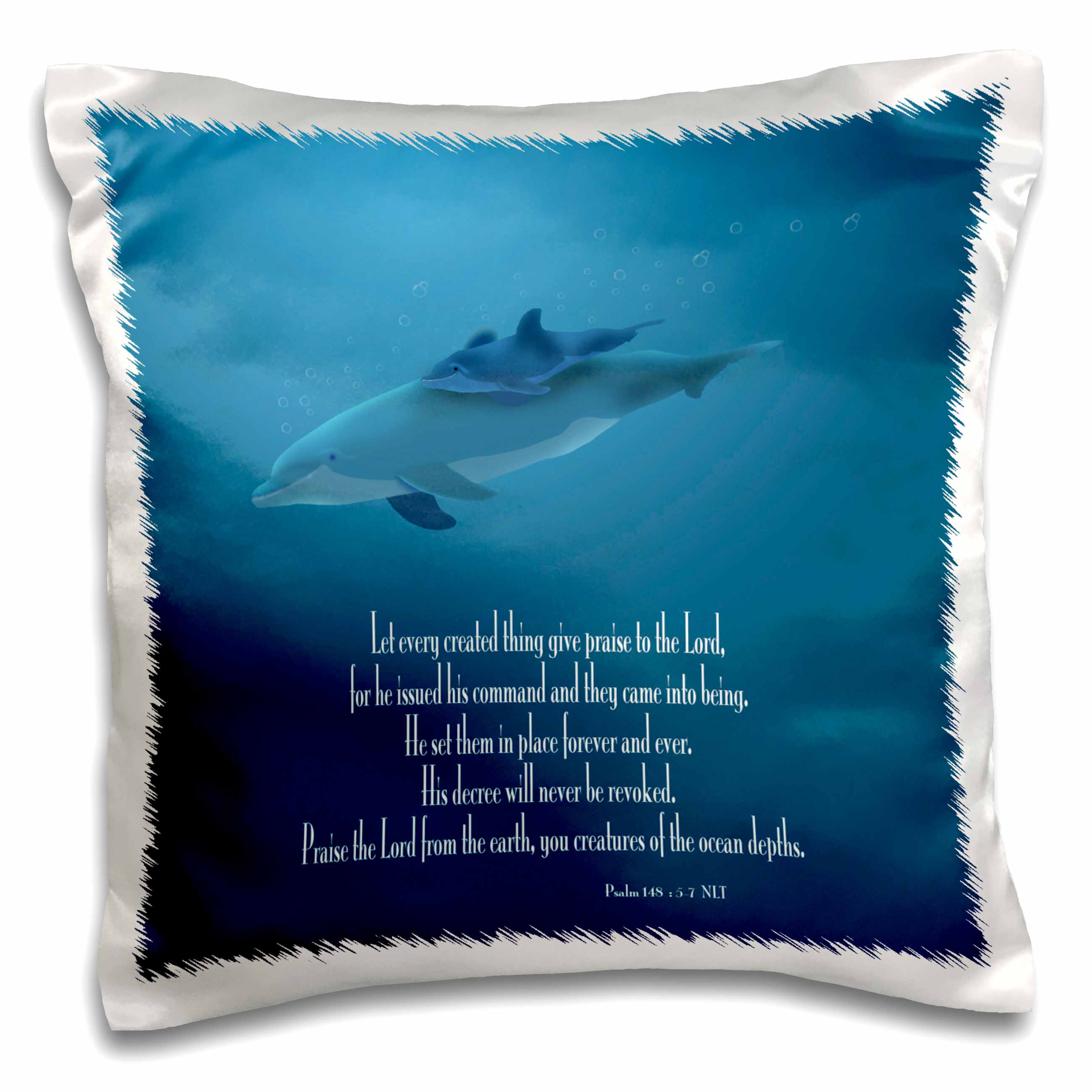 3dRose 777images Designs Graphic Design Bible Verse - Mother and Baby Dolphin swimming in the aqua colored ocean with the Bible verse Psalm 148 v 5-7 - Pillow Cases (pc_36108)