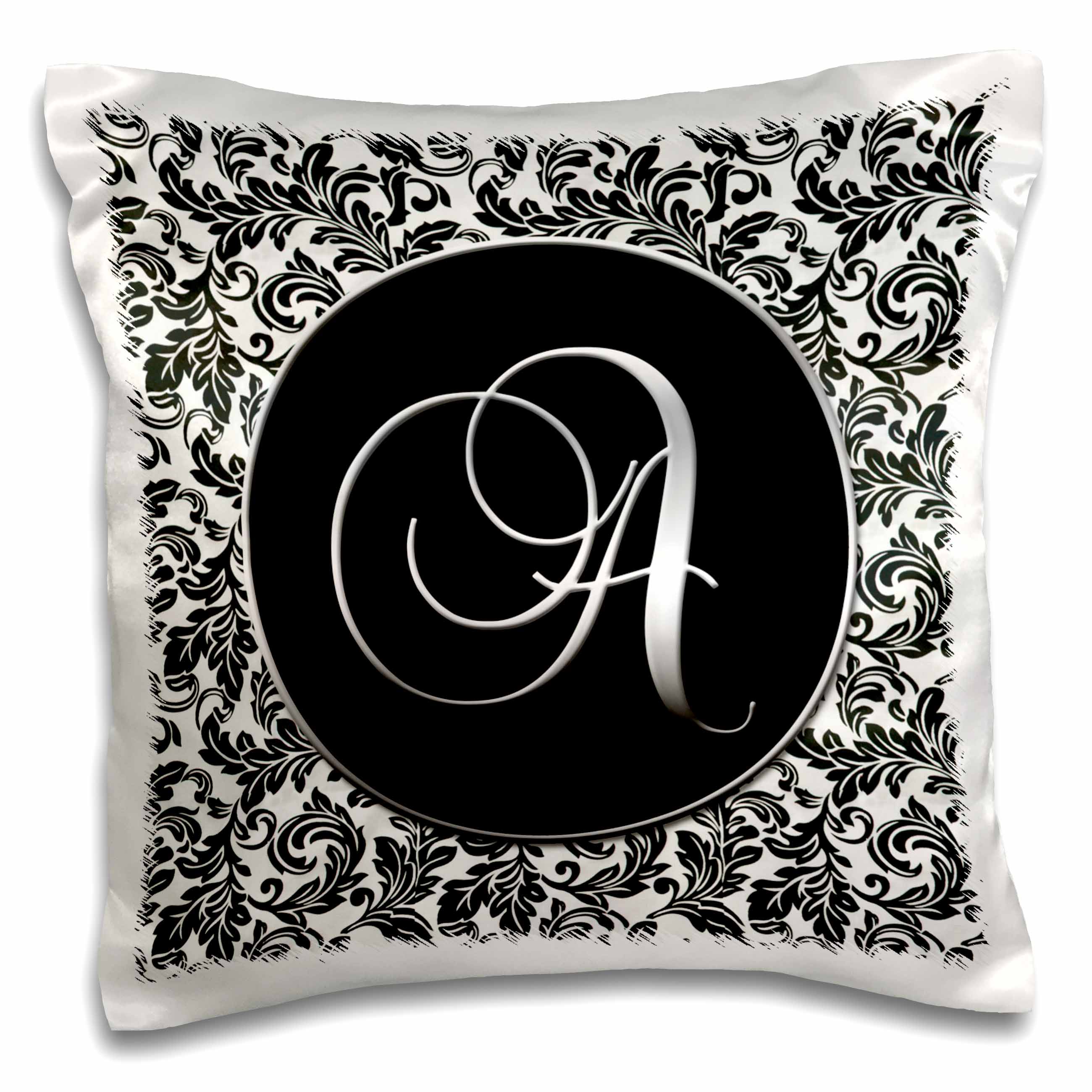 3dRose Doreen Erhardt Monogrammed Collection - Letter A - Black and White Damask - Pillow Cases (pc_38750)
