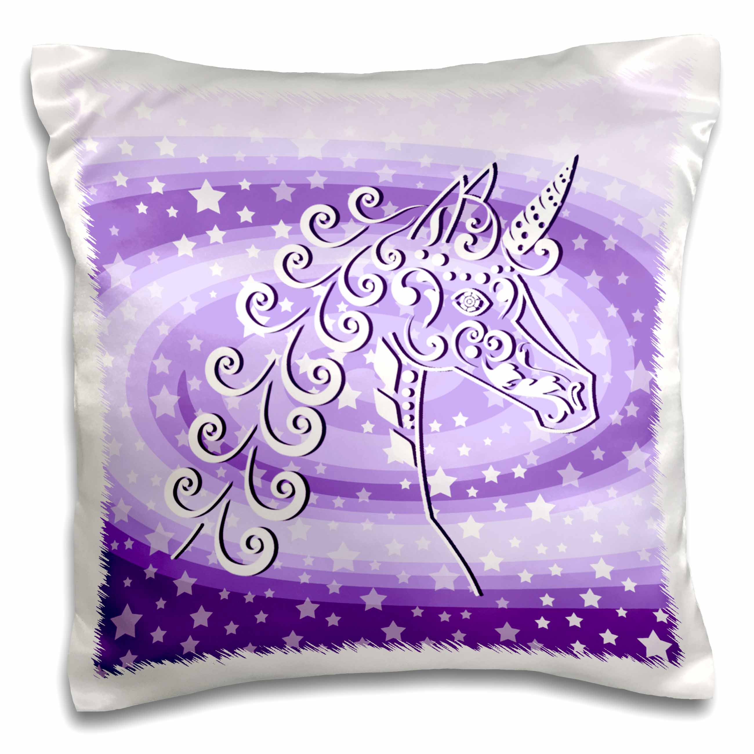 Magical Unicorn and Stars on Purple Swirl Pillow Case is a great way to add a splash of style to any room. The unique design of this 16" x 16" throw pillow case is sure to turn heads. Made of a durable satin material with a rear fold over closure. Image printed on one side. Machine washable, cold water, no bleach, turn inside out. Pillow insert not included.