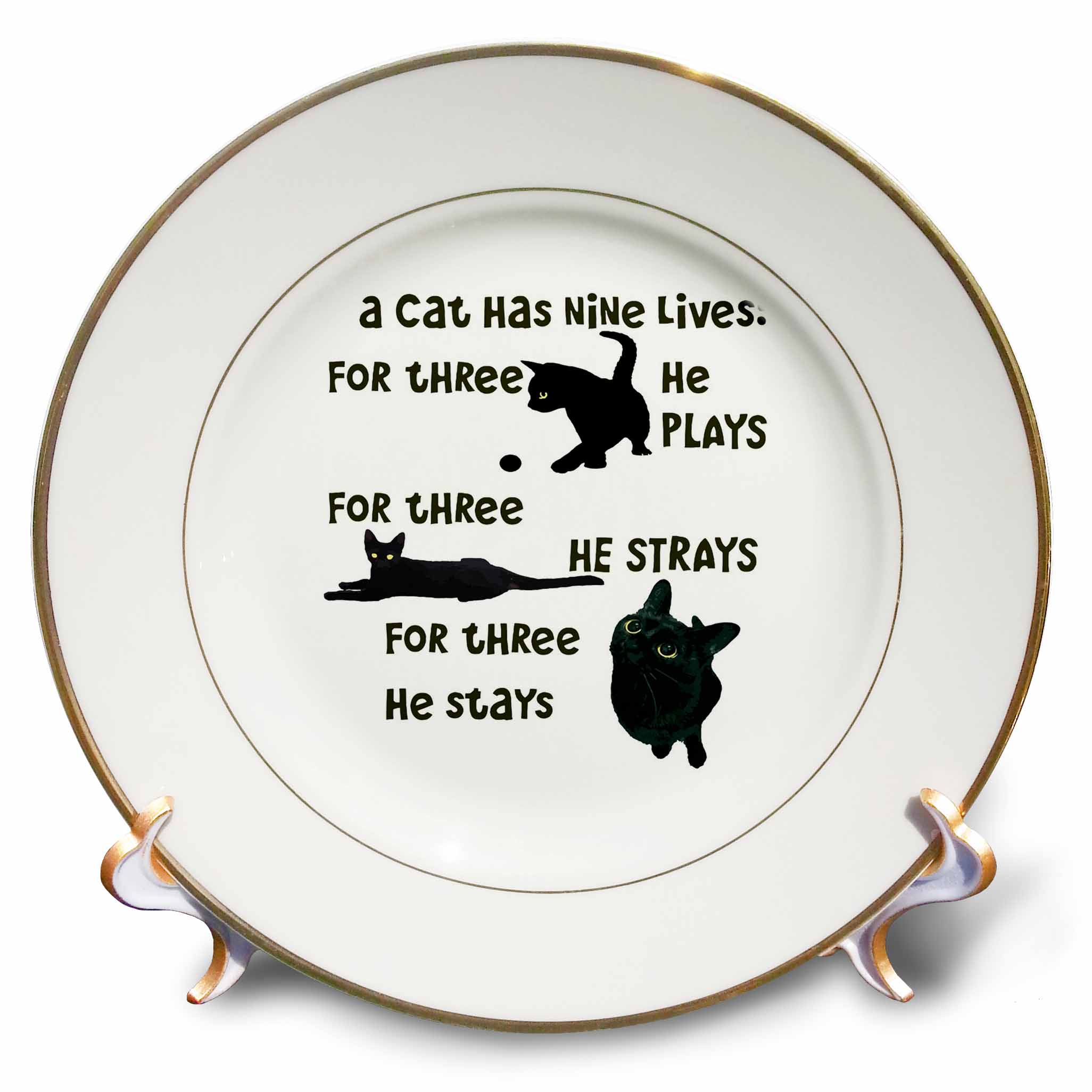 3dRose A Cat Has Nine Lives He Plays He Strays He Stays Quote - Plates (cp-383427)