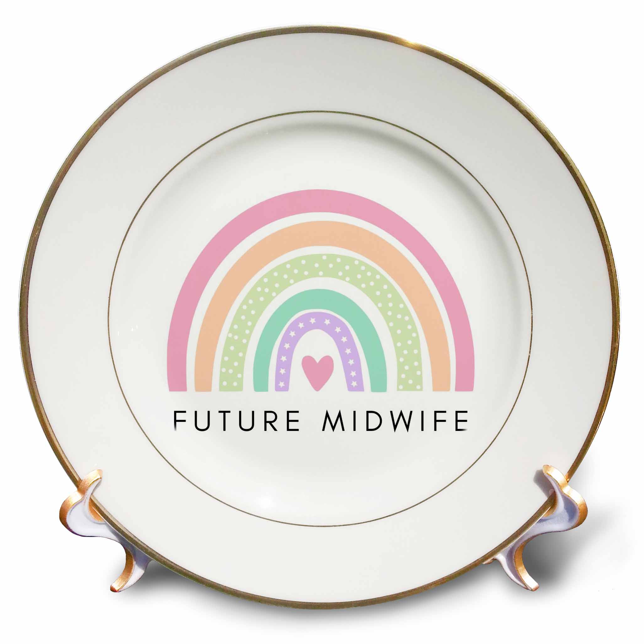 3dRose Future Midwife Cute Pastel Boho Rainbow Midwifery Student Birth Work - Plates (cp-369664)