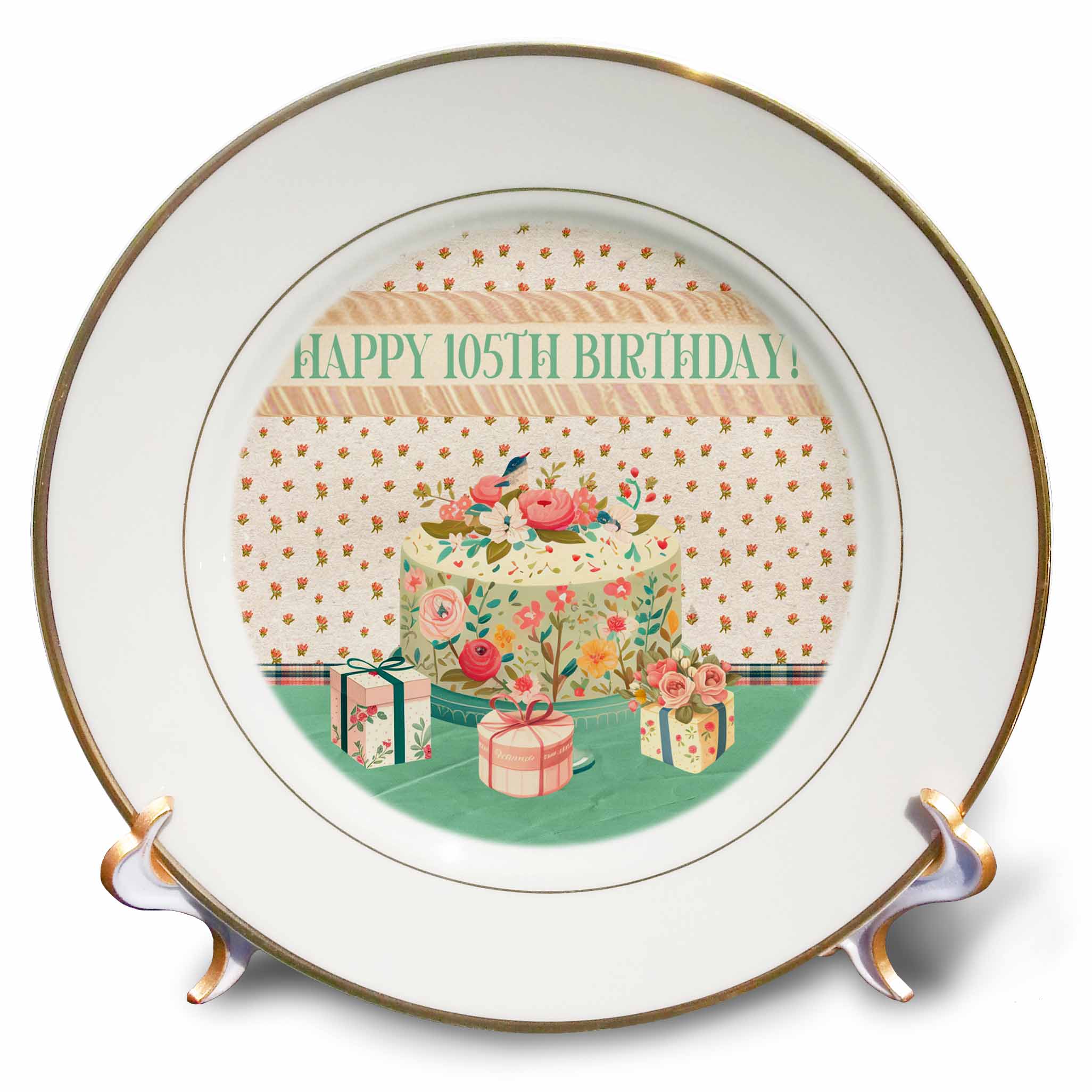 3dRose Happy 105th Birthday, Bird in Flower Garden Cake, Gifts, Pastels - Plates (cp-383144)