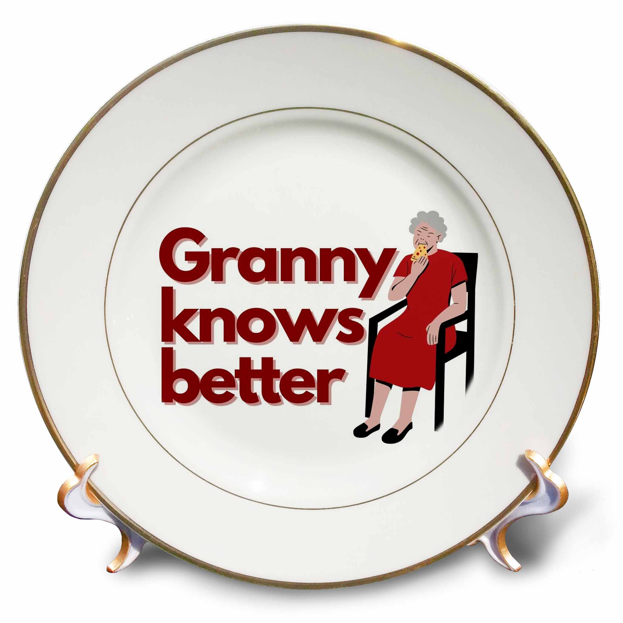 3dRose Image of Grandmother with Text of Granny knows Better - Plates (cp-370014)