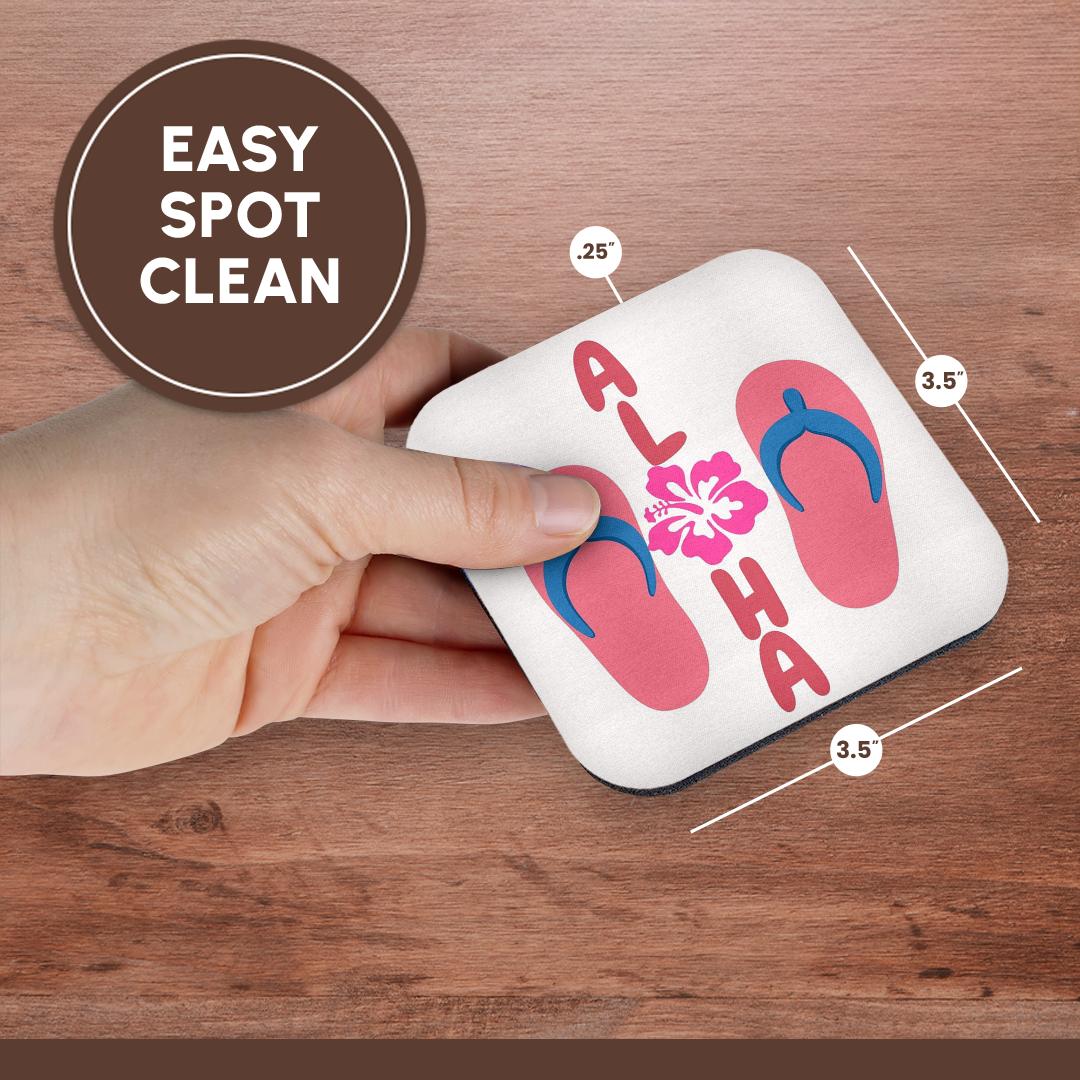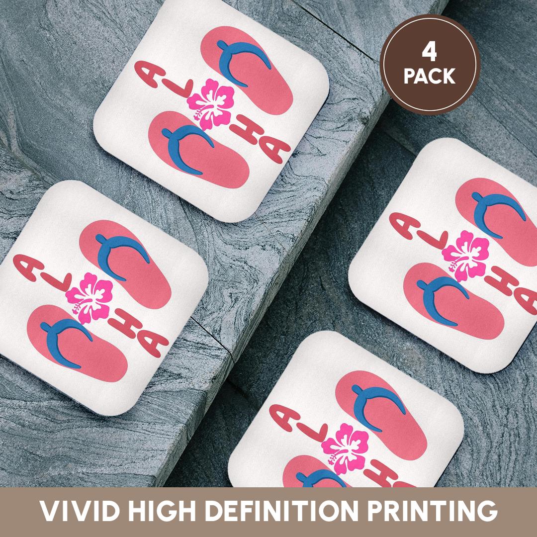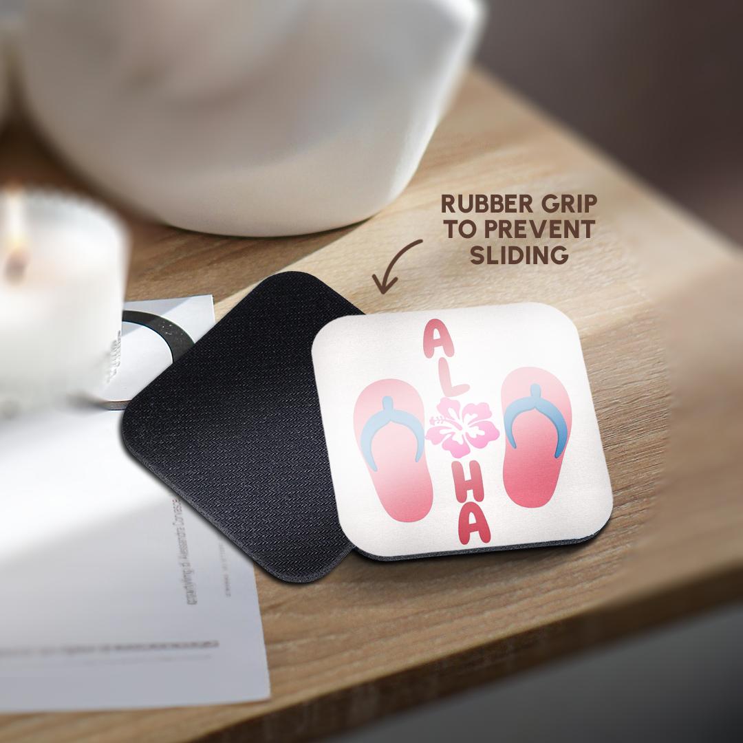 Image of Slippers with Flower Coaster is a great complement to any home décor. Soft coasters are 3.5" x 3.5", are absorbent, and can be washed. Ceramic coasters are 4.25" x 4.25", non absorbent and come with felt corner pads. Available in sets of 4 and 8.