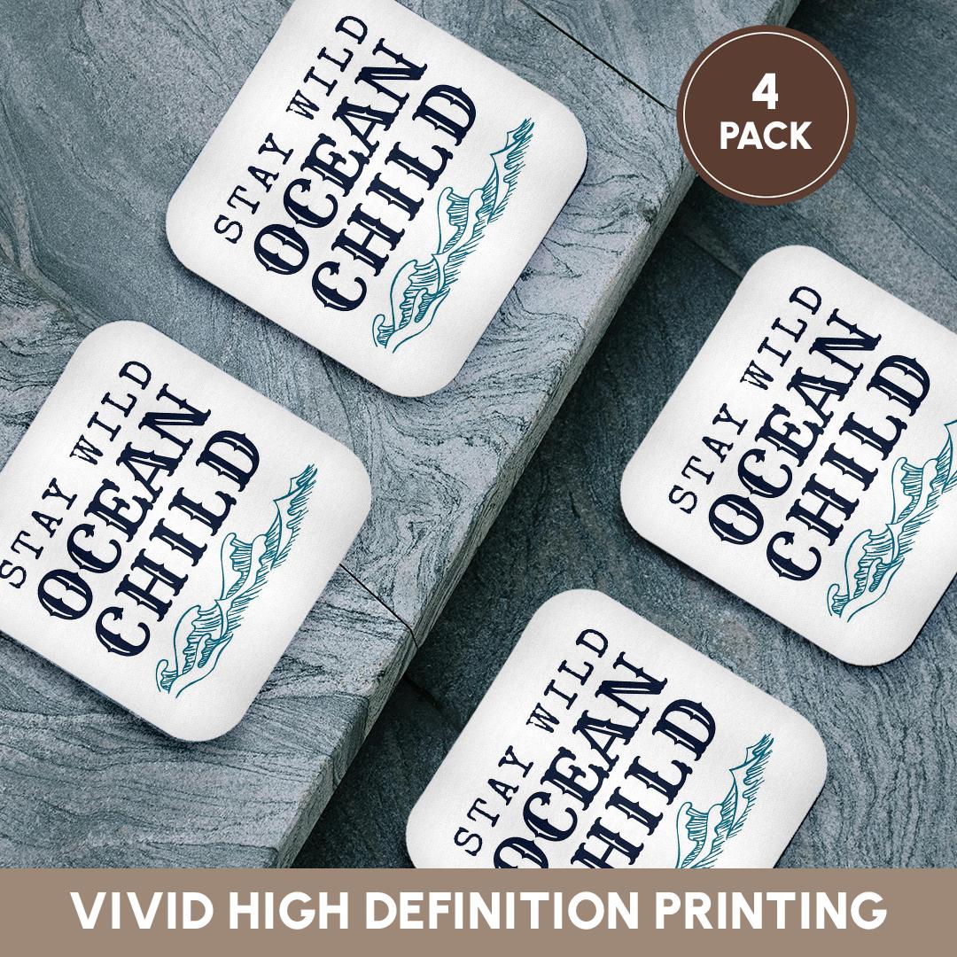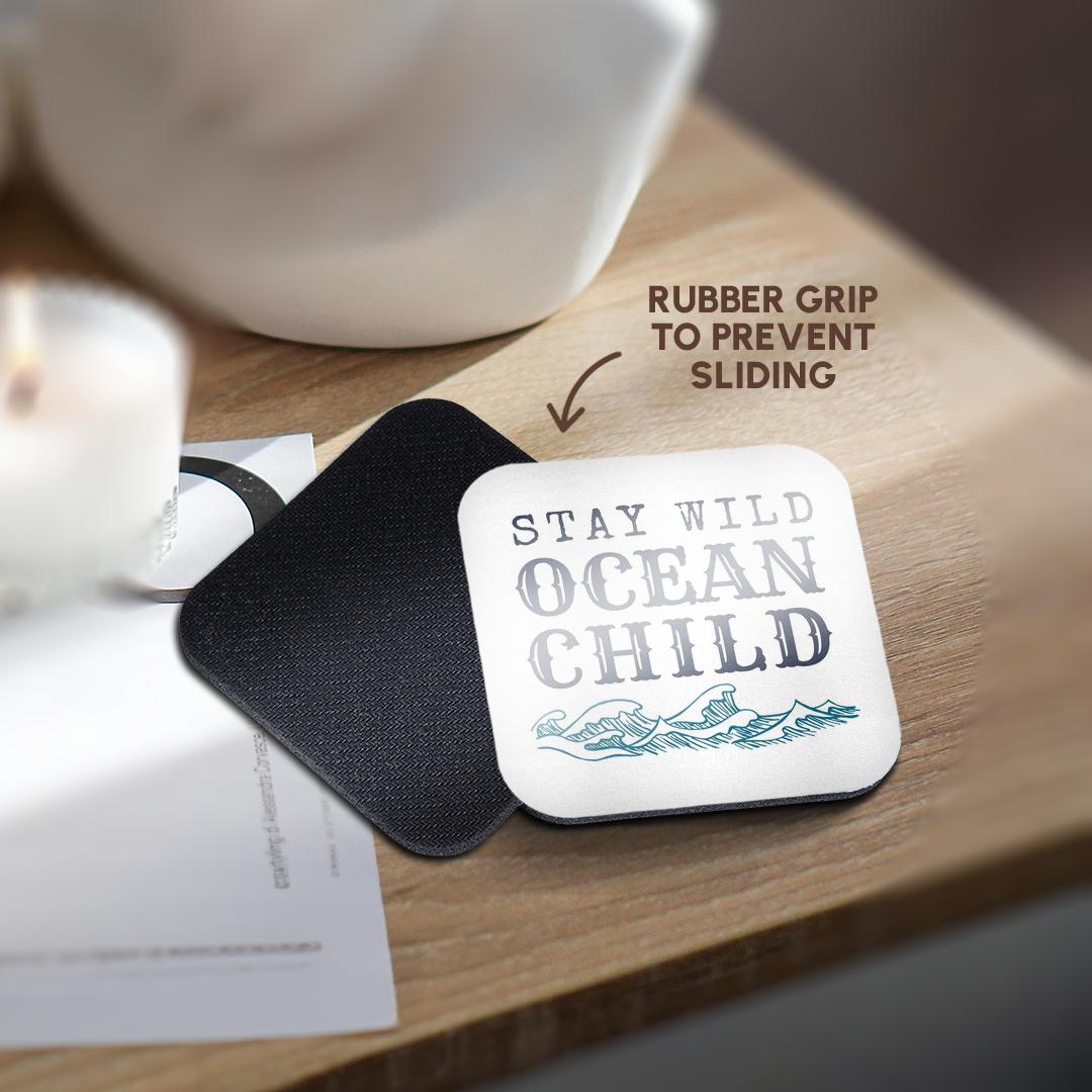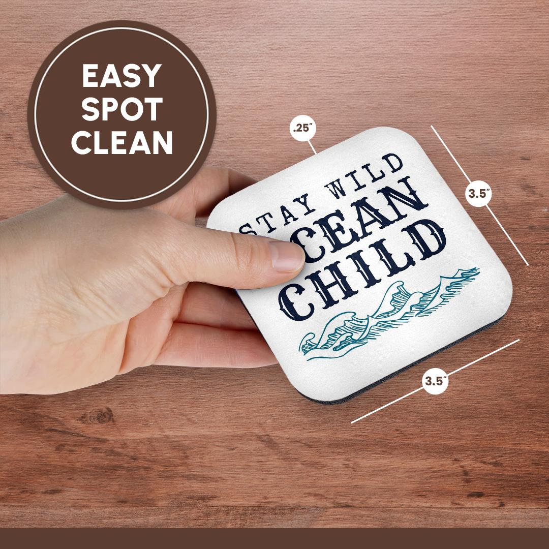 Stay Wild Ocean Child Summer Prints Coaster is a great complement to any home décor. Soft coasters are 3.5" x 3.5", are absorbent, and can be washed. Ceramic coasters are 4.25" x 4.25", non absorbent and come with felt corner pads. Available in sets of 4 and 8.