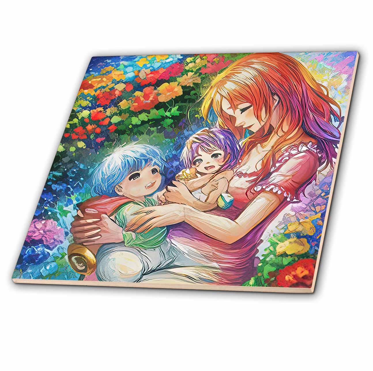 3dRose A Mother with Two Babies in The Garden on a Sweet Spring Day Gift - Tiles (ct-376788)