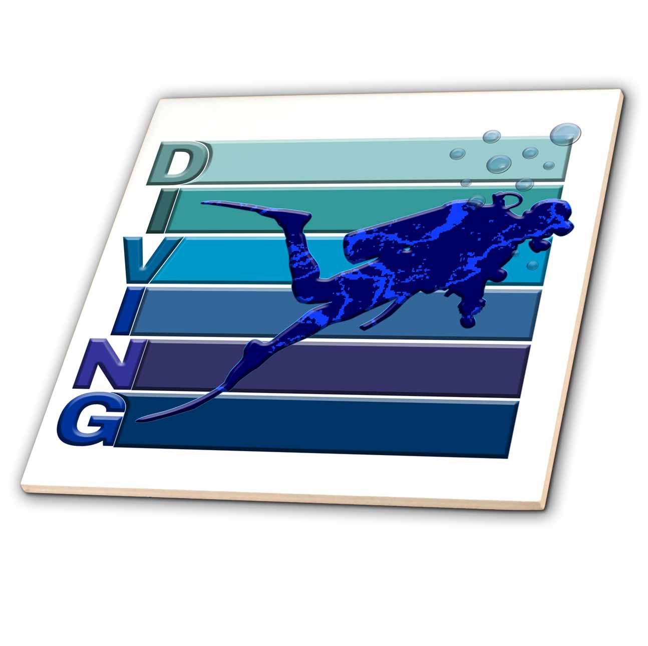 3dRose Diving. A Stylish Man Scuba Diver Silhouette, Bubbles, Blue Lines - Tiles (ct-361950)