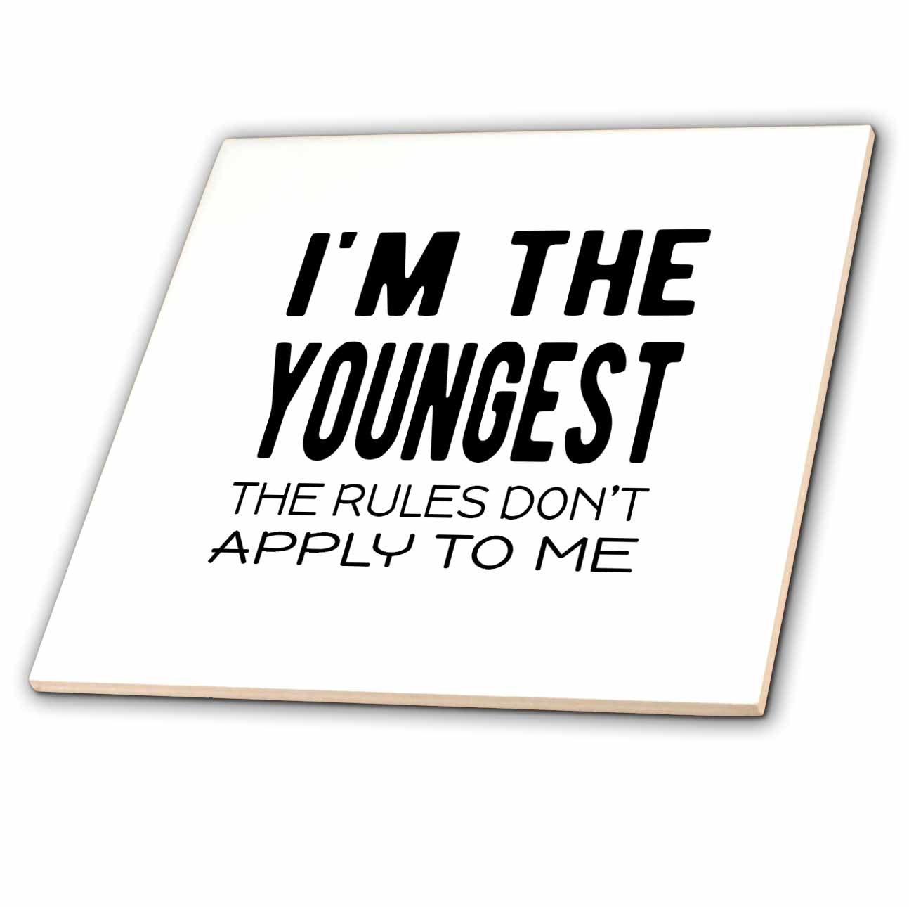 3dRose Im The Youngest The Rules Don’t Apply to Me. Black on White Background - Tiles (ct-382330)