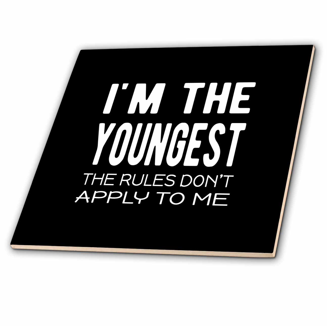 3dRose Im The Youngest The Rules Don’t Apply to Me. White on Black Background - Tiles (ct-382329)