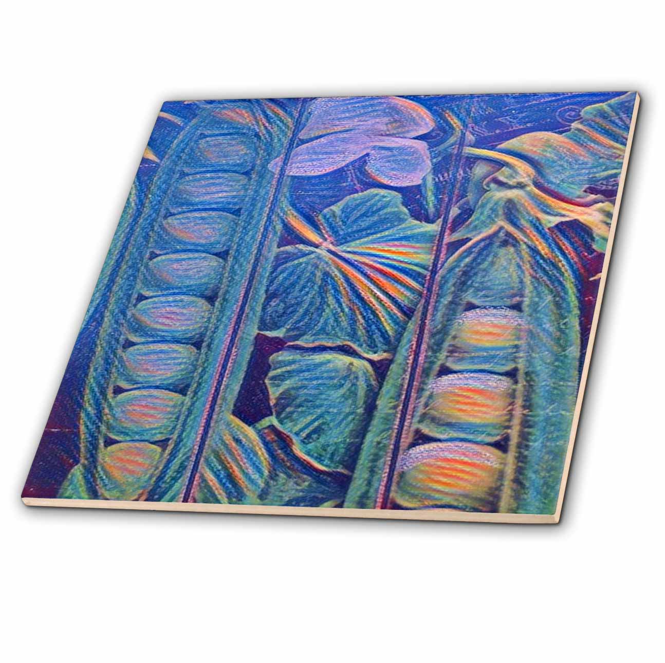 3dRose Image of Blue Peas in Pods with Leaves in Van Gogh Style - Tiles (ct_348254)