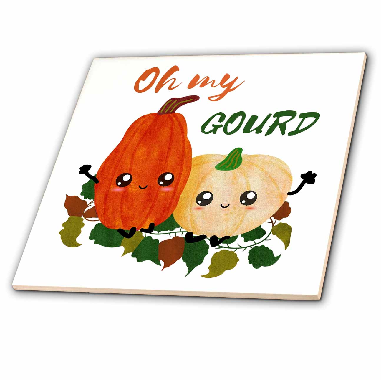 3dRose Oh My Gourd Cute Kawaii Happy Autumn Fall Squash Adorable Pumpkins - Tiles (ct-371851)