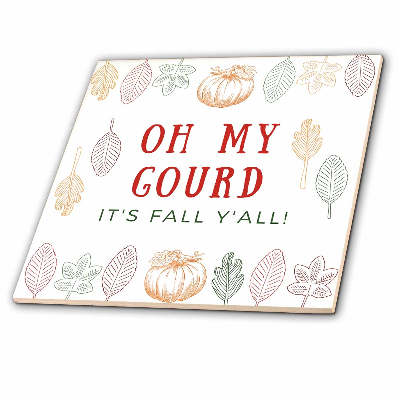 3dRose Oh My Gourd Its Fall Yall - Funny It is Autumn Y All Squash Humor - Tiles (ct-371839)