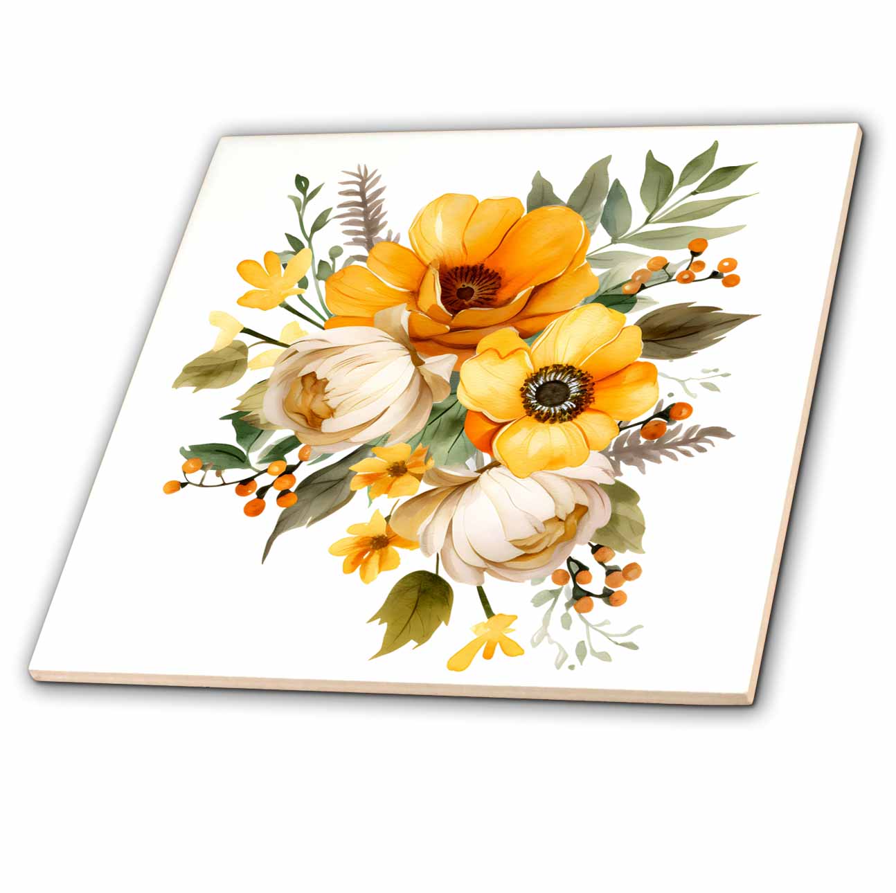 Pretty Fall Anemone Flower Bouquet Illustration Tile is great for a backsplash, countertop or as an accent. This commercial quality construction grade tile has a high gloss finish. The image is applied to the top surface and can be cleaned with a mild detergent.